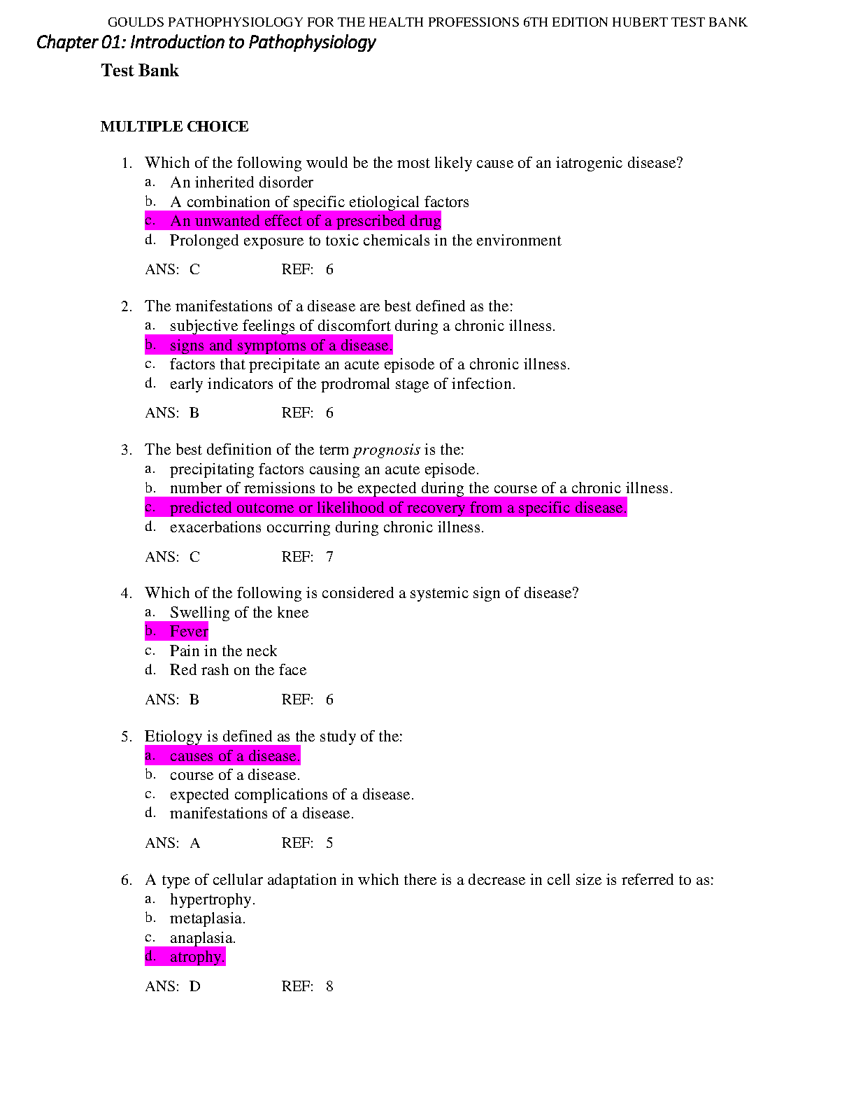 Gould's Pathophysiology for the Health Professions 6th Edition Test Bank by Linda S. Smeltzer, Brenda G. Bare, Suzanne C. Hinkle, Kerry L. Cheever
