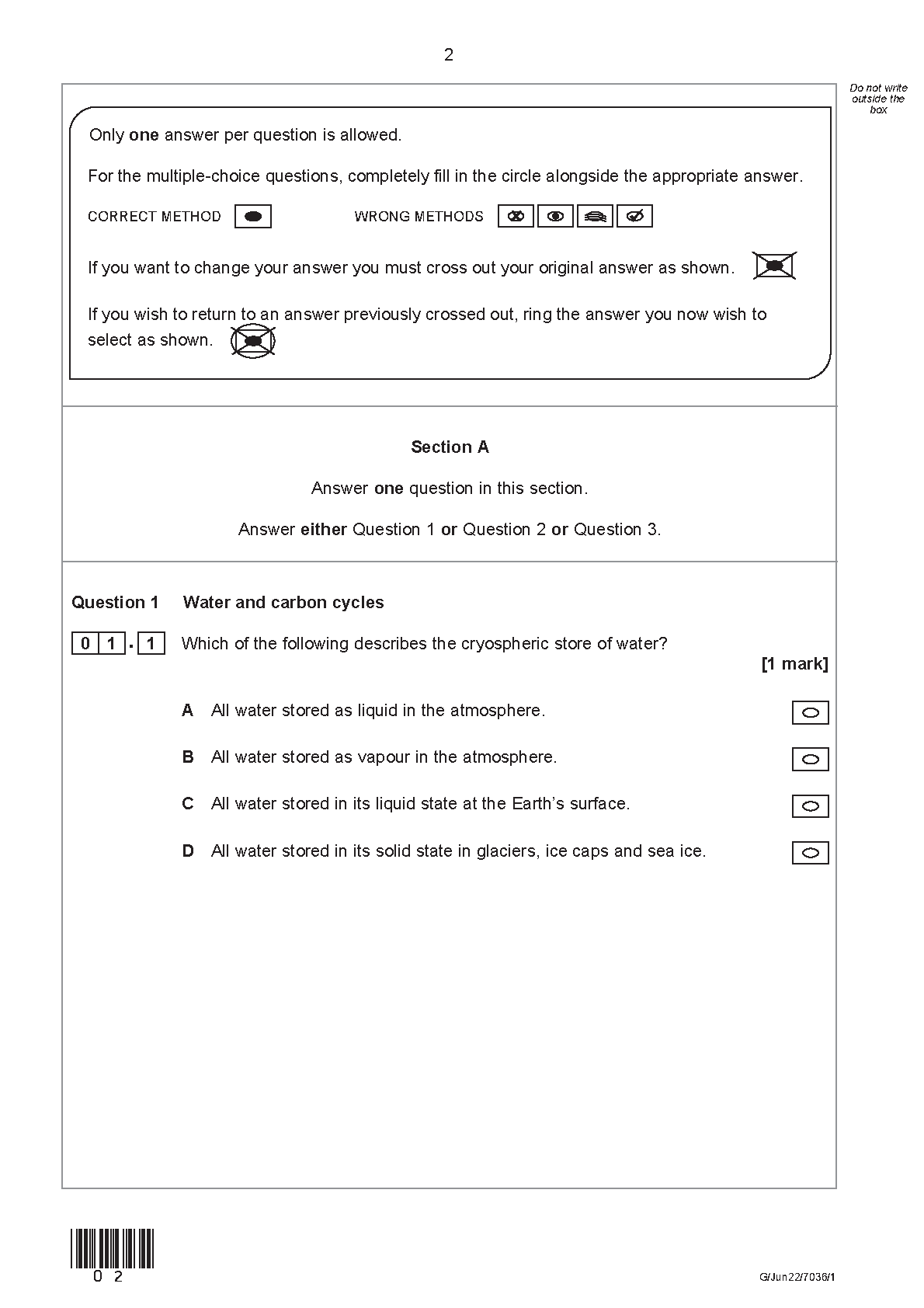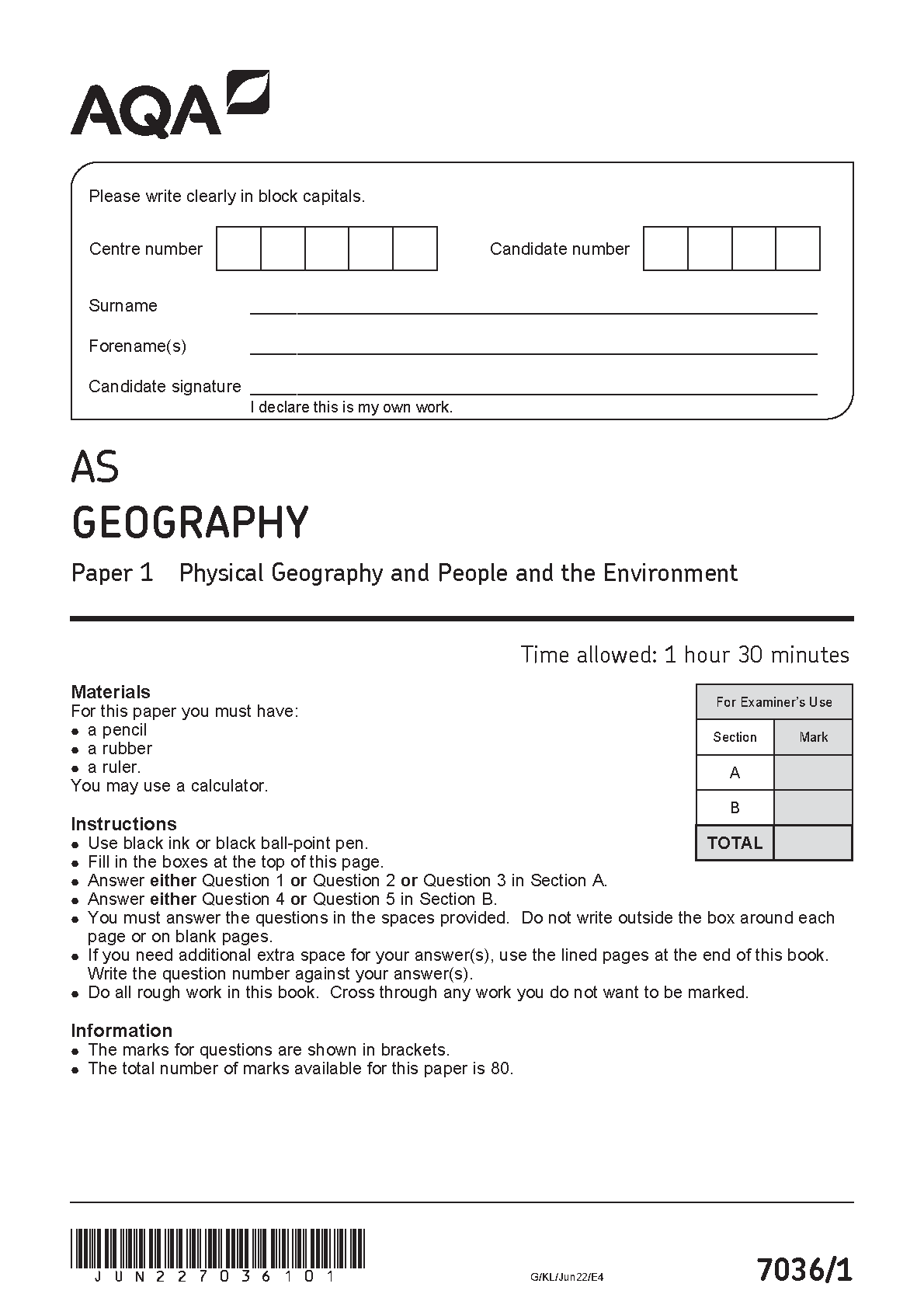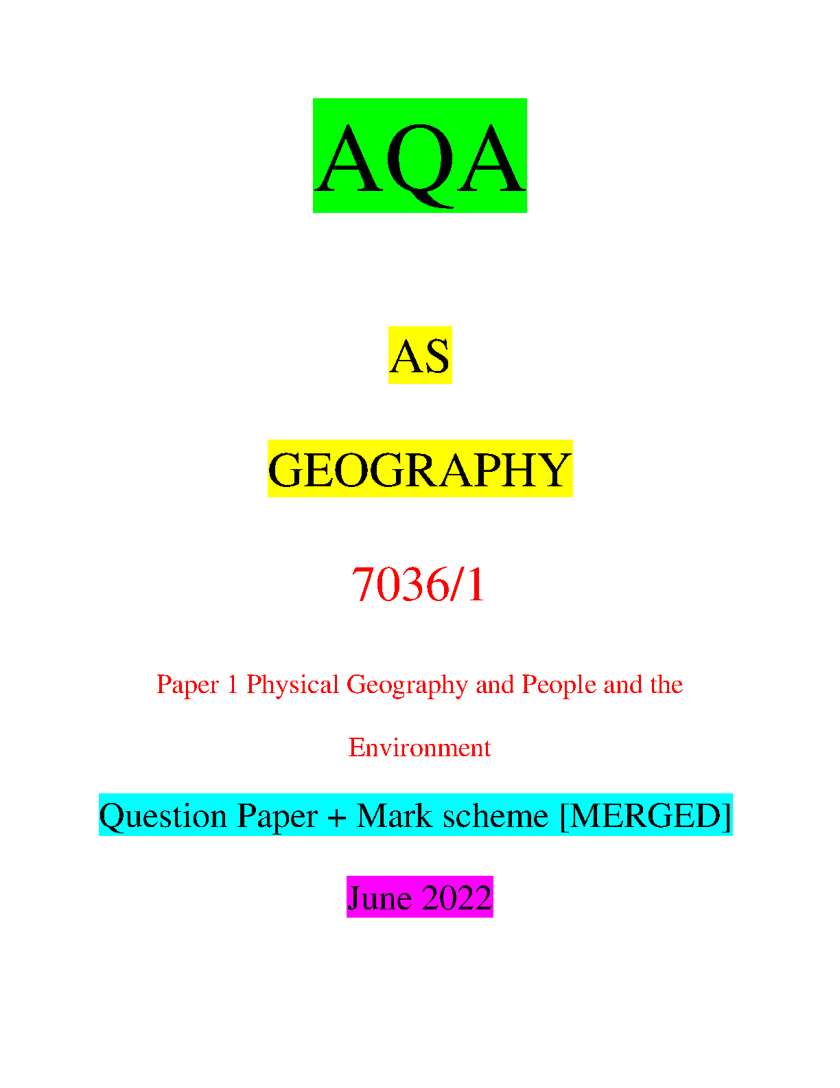 AQA AS Geography 7036/1 Paper 1 Physical Geography and People and the Environment June 2022 Question Paper + Mark scheme [MERGED]