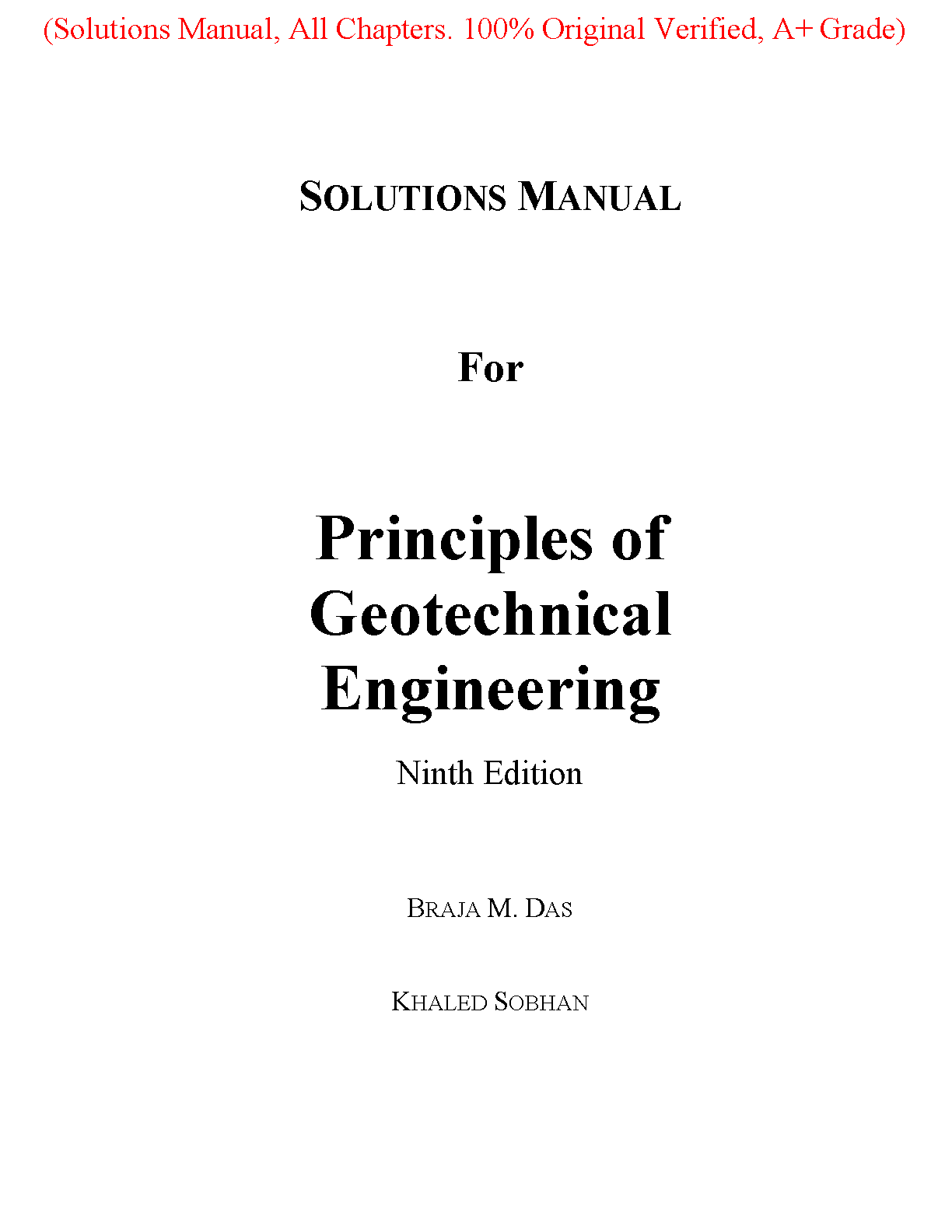 Get the complete solutions manual for Principles of Geotechnical Engineering 9th edition by Braja M. Das and Khaled Sobhan and ace your exams on the first try.