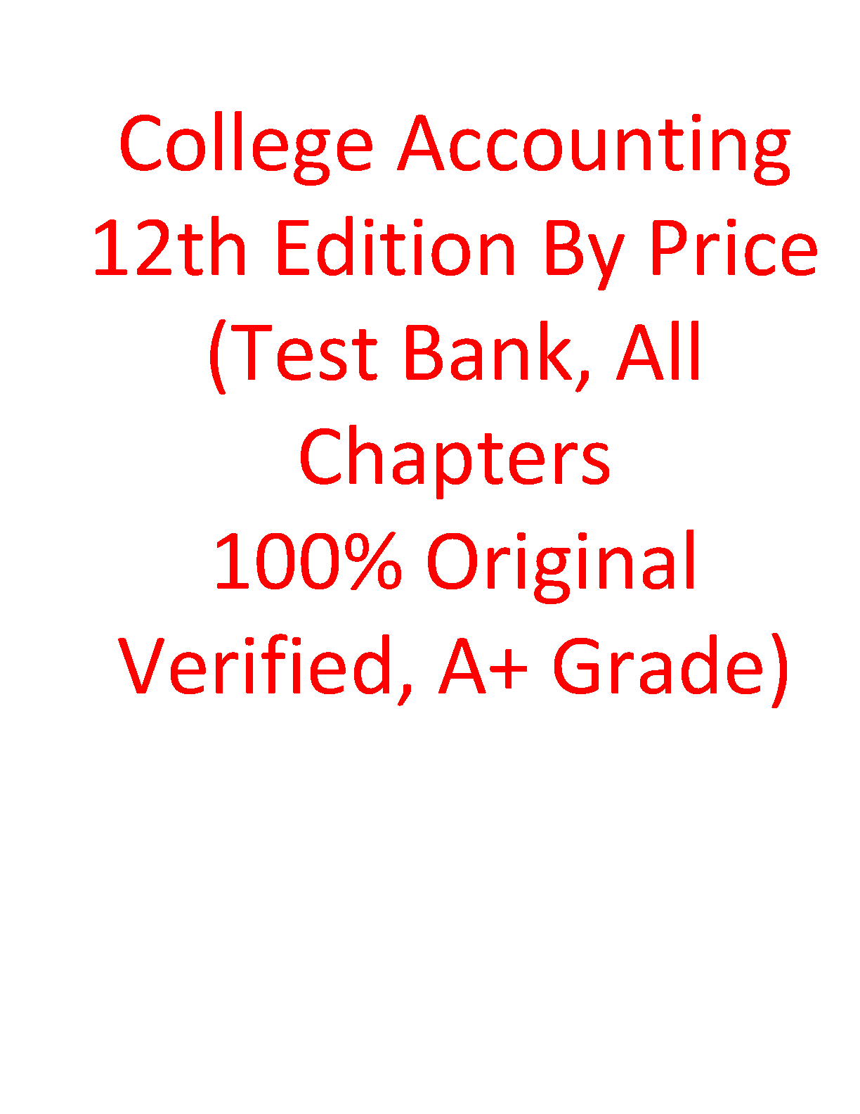 Get ready to ace your College Accounting course with this comprehensive 12th edition test bank. This resource provides you with all the answers and solutions to practice problems and test questions. It's perfect for acing quizzes, midterms, and finals.