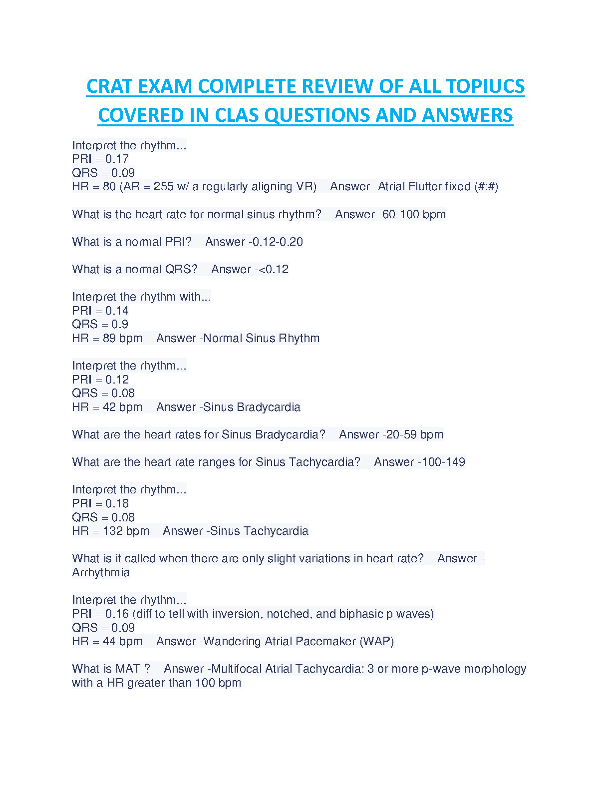 CRAT Exam Complete Review of All Topics Covered in Class Questions and Answers - 2024-2025 Edition