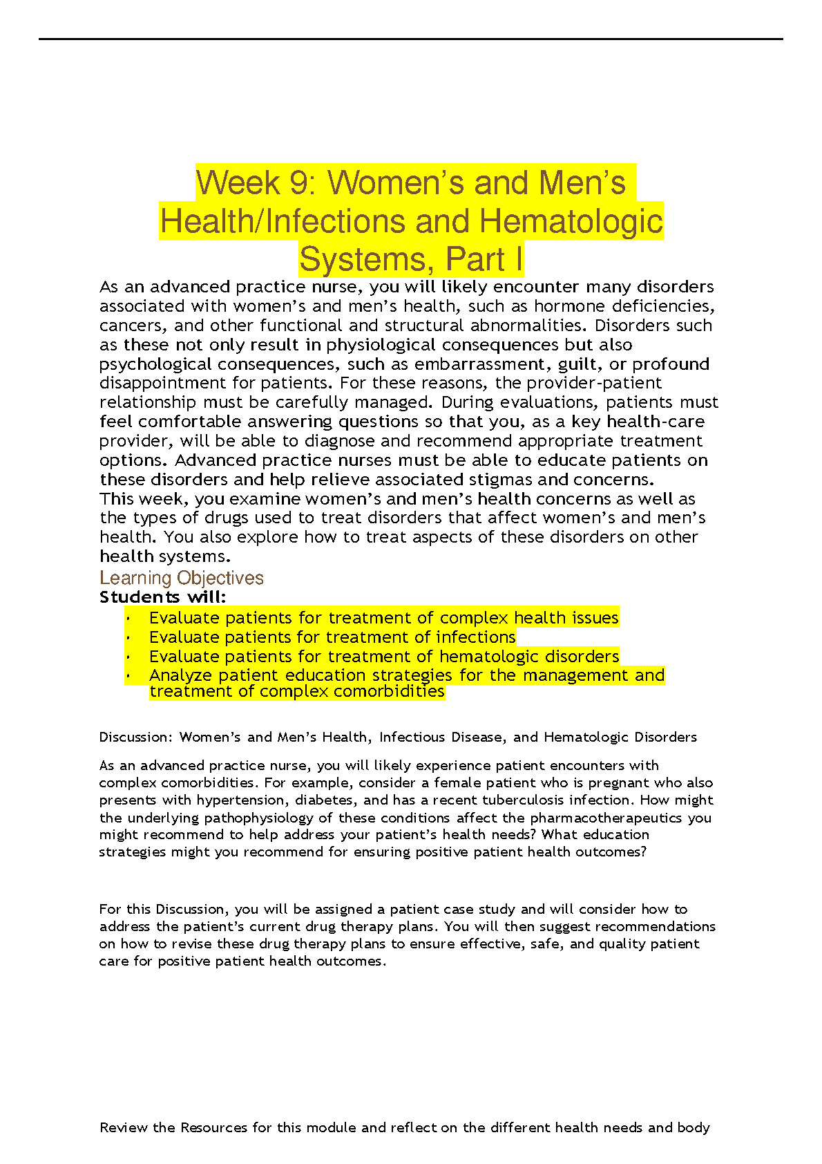 This comprehensive guide covers the essential topics of Women's and Men's Health, Infections, and Hematologic Systems, designed for the 2024/2025 academic year. It includes key concepts, effective learning strategies, and practice questions to help you master the subject matter and avoid resits.
