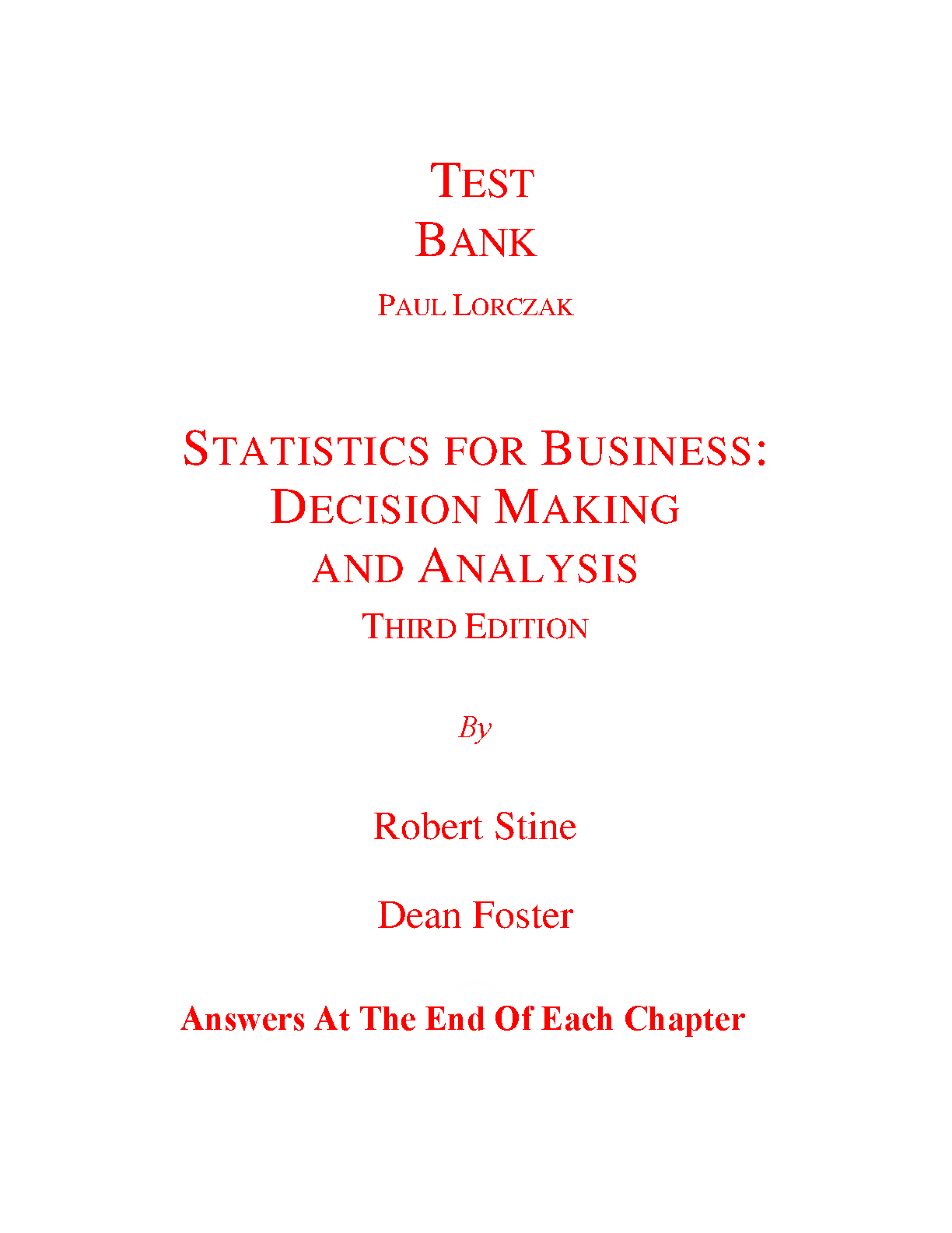 Test Bank for Statistics for Business: Decision Making and Analysis, 3rd Edition by Robert Stine and Dean Foster