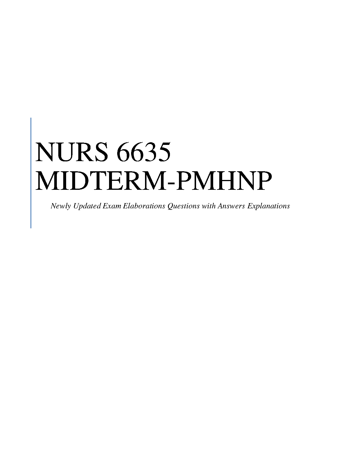 This resource provides comprehensive exam elaborations for the NURS 6635 Midterm-PMHNP course. Featuring newly updated questions and detailed answers with explanations, this study guide is designed to help students ace their exams on the first attempt and avoid resits.