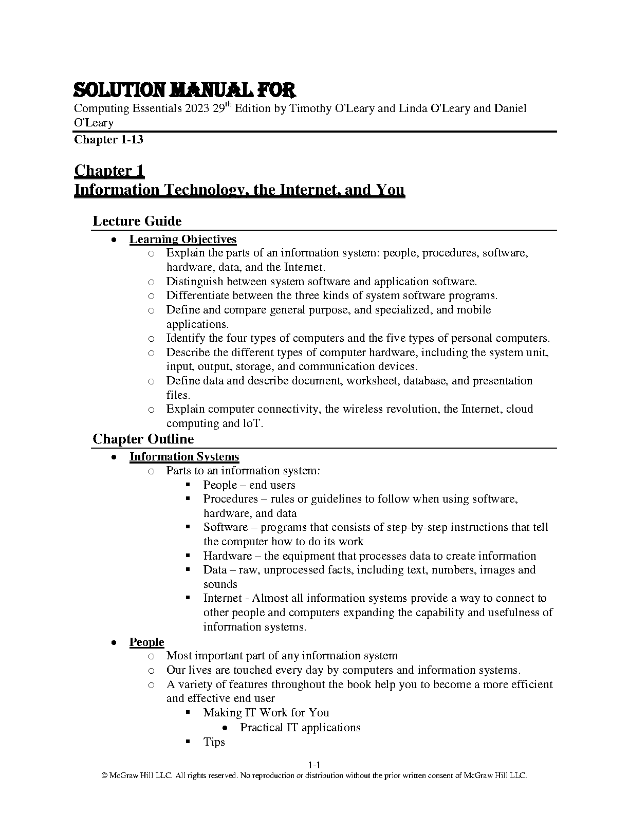 Comprehensive Solutions Manual for Computing Essentials 29th Edition by Timothy O'Leary, Linda O'Leary and Daniel O'Leary. This manual provides detailed solutions to all end-of-chapter exercises and problems, ensuring students grasp key concepts and excel in their understanding.