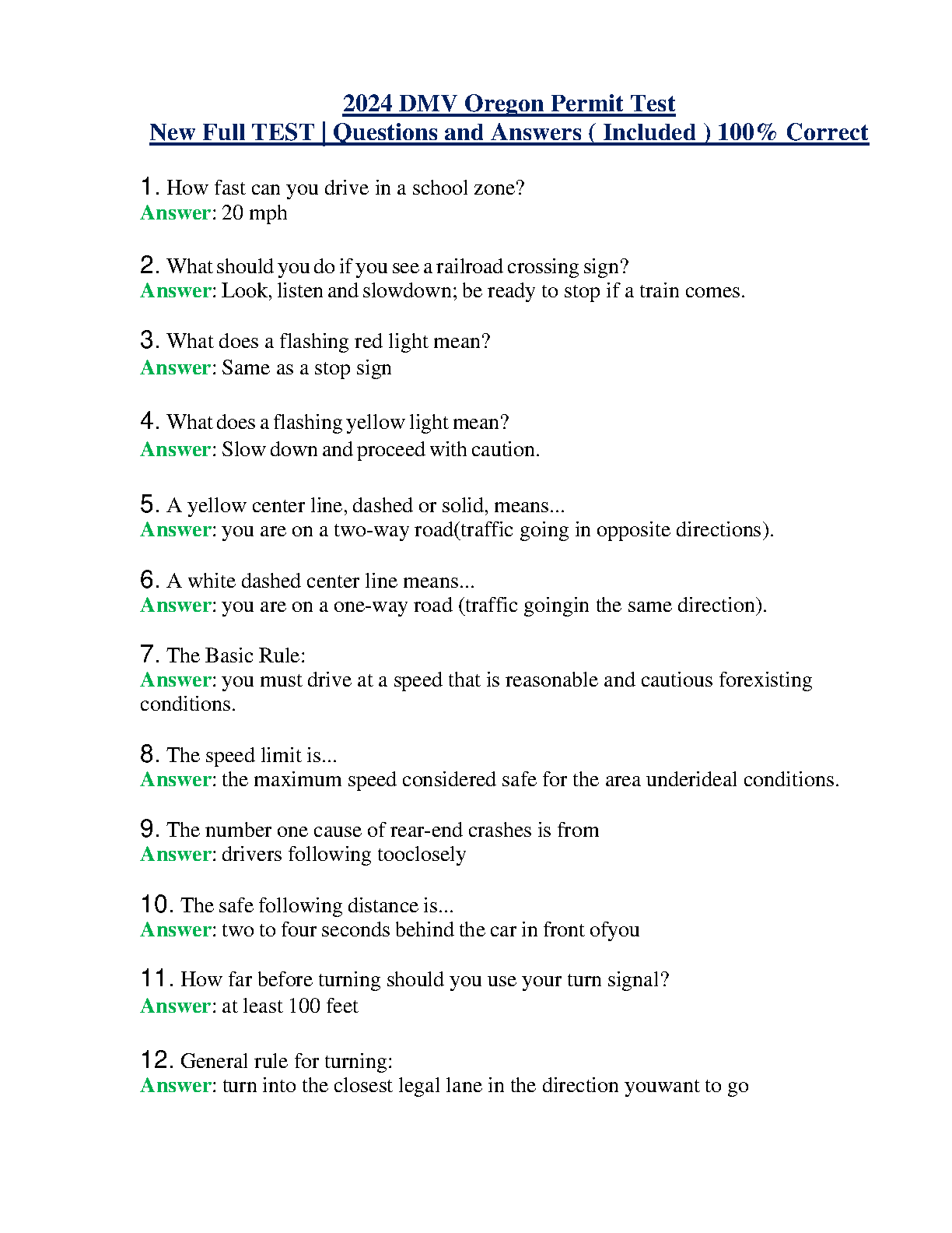 2024 DMV Oregon Permit Test Questions and Answers (Included) 100% Correct