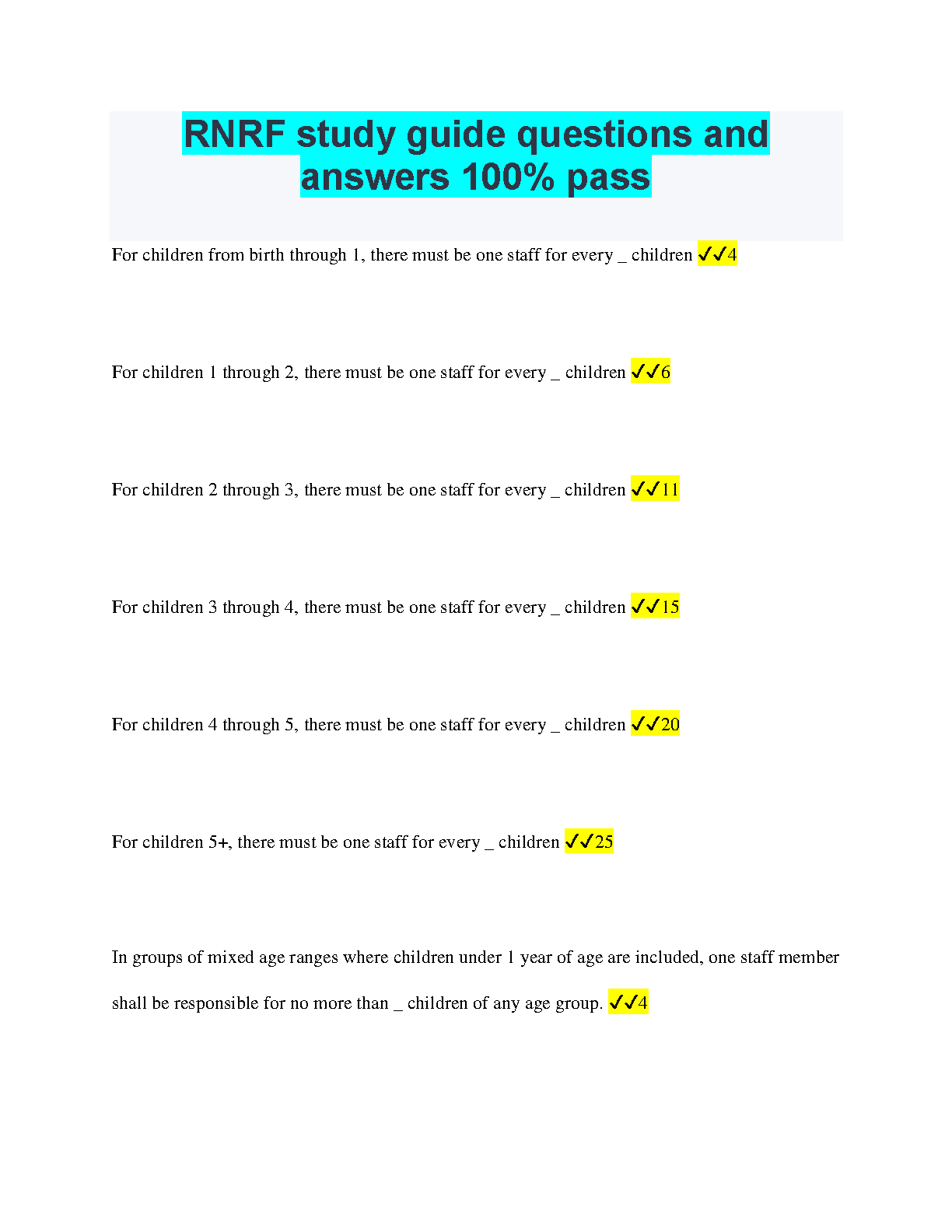 RN Care Ratio Guide Questions and Answers 100% Pass