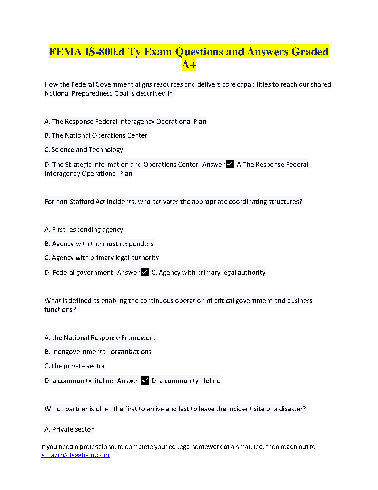 Ace your FEMA IS-800.d exam on the first attempt with our comprehensive study guide. This resource includes detailed answers to all the latest exam questions, ensuring you are well-prepared and confident.