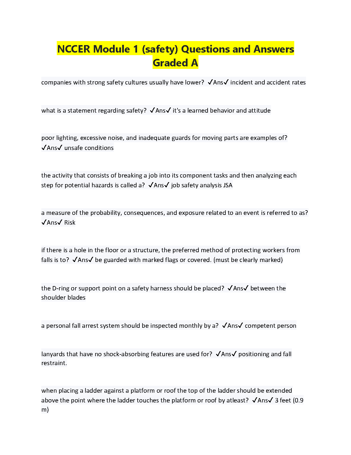 NCCER Module 1 (Safety) Questions and Answers Graded A - 2024/2025 Edition - Master Safety with Practice Questions