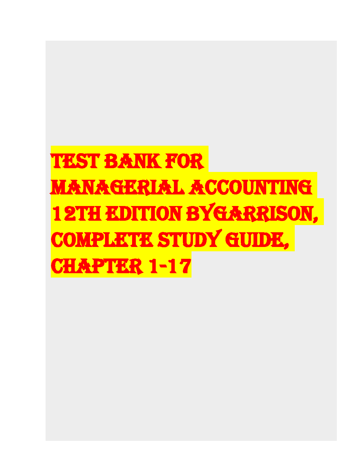 Comprehensive and accurate Test Bank for Managerial Accounting 12th Edition by Garrison, Noreen, Brewer. Prepare effectively for your exams with detailed solutions for every chapter. Ace your exams with our proven study tools.