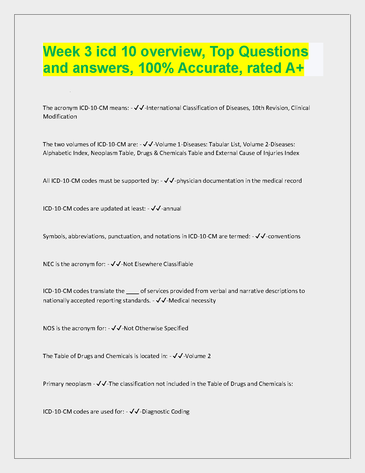 ICD-10-CM: Week 3 Overview, Top Questions and Answers, 100% Accurate, Rated A+ (2024-2025 Edition)