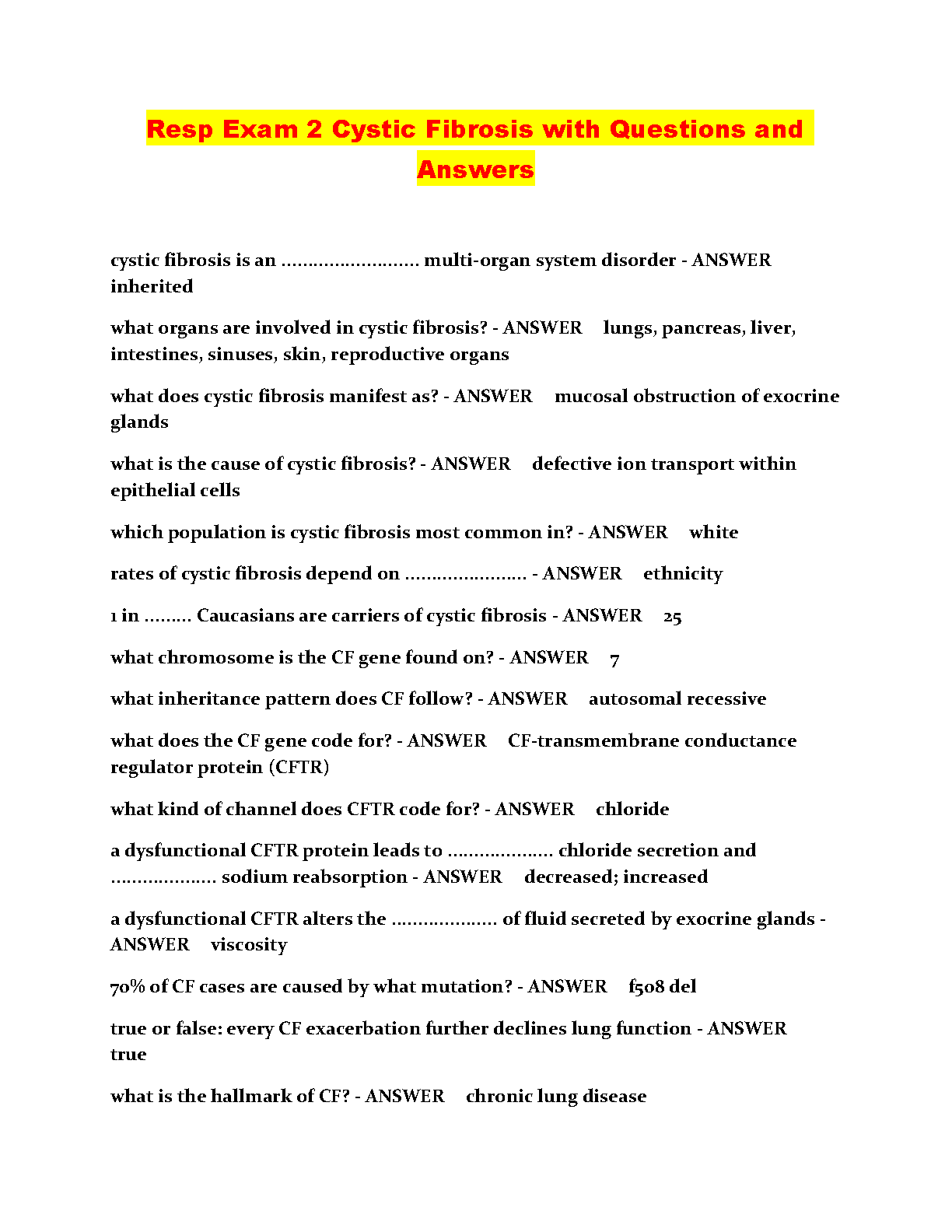 Ace your Respiratory exam with this comprehensive study guide. This resource includes detailed questions and answers covering all aspects of cystic fibrosis. It is designed to help students achieve mastery of the subject and confidently pass their exams.