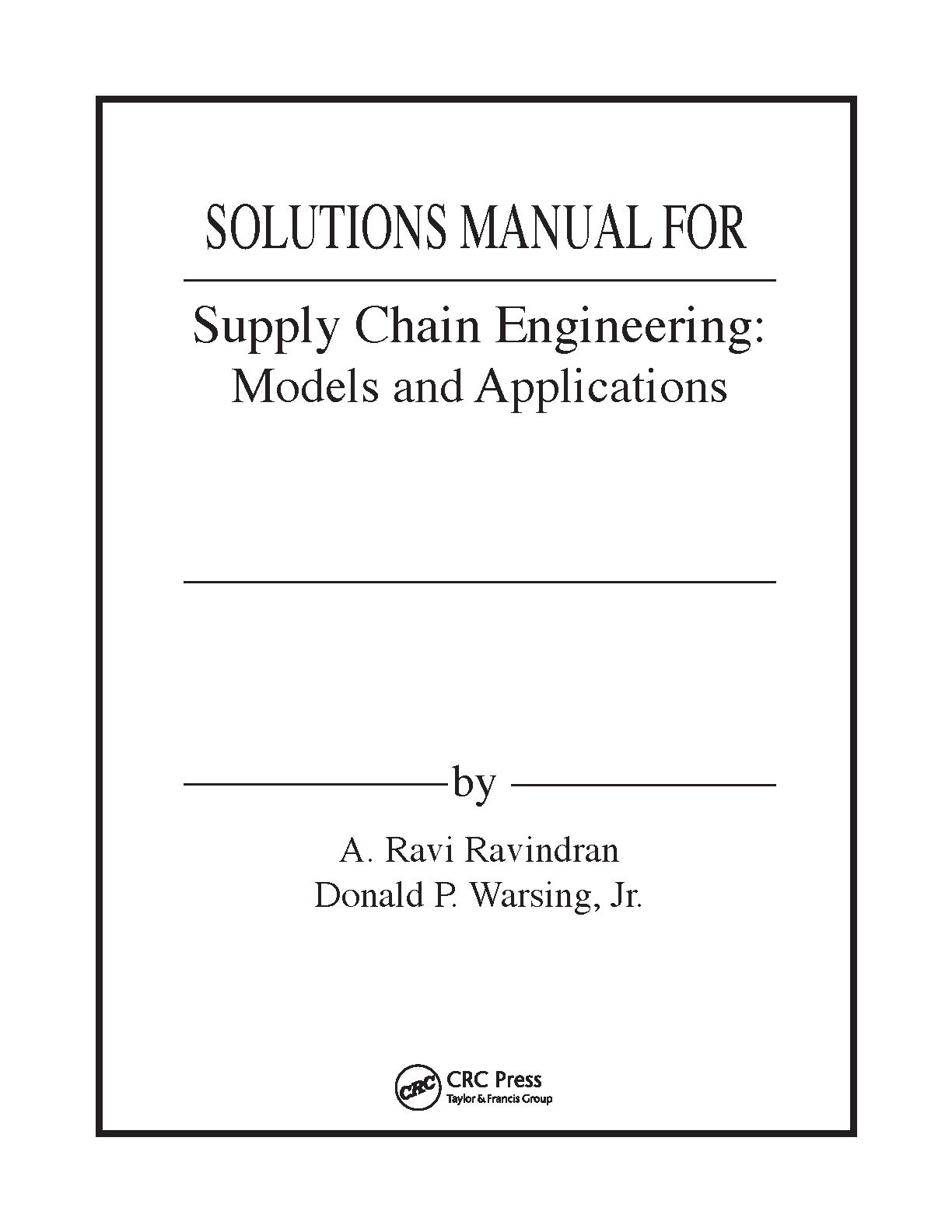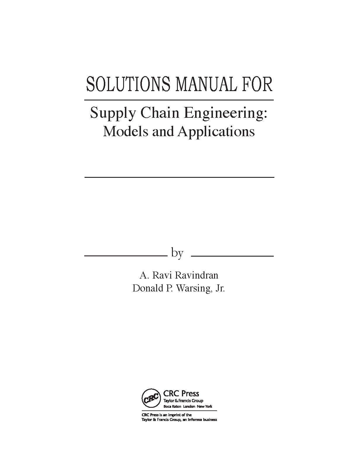 Solutions Manual for Supply Chain Engineering: Models and Applications, 1st Edition by A. Ravi Ravindran and Donald P. Warsing Jr