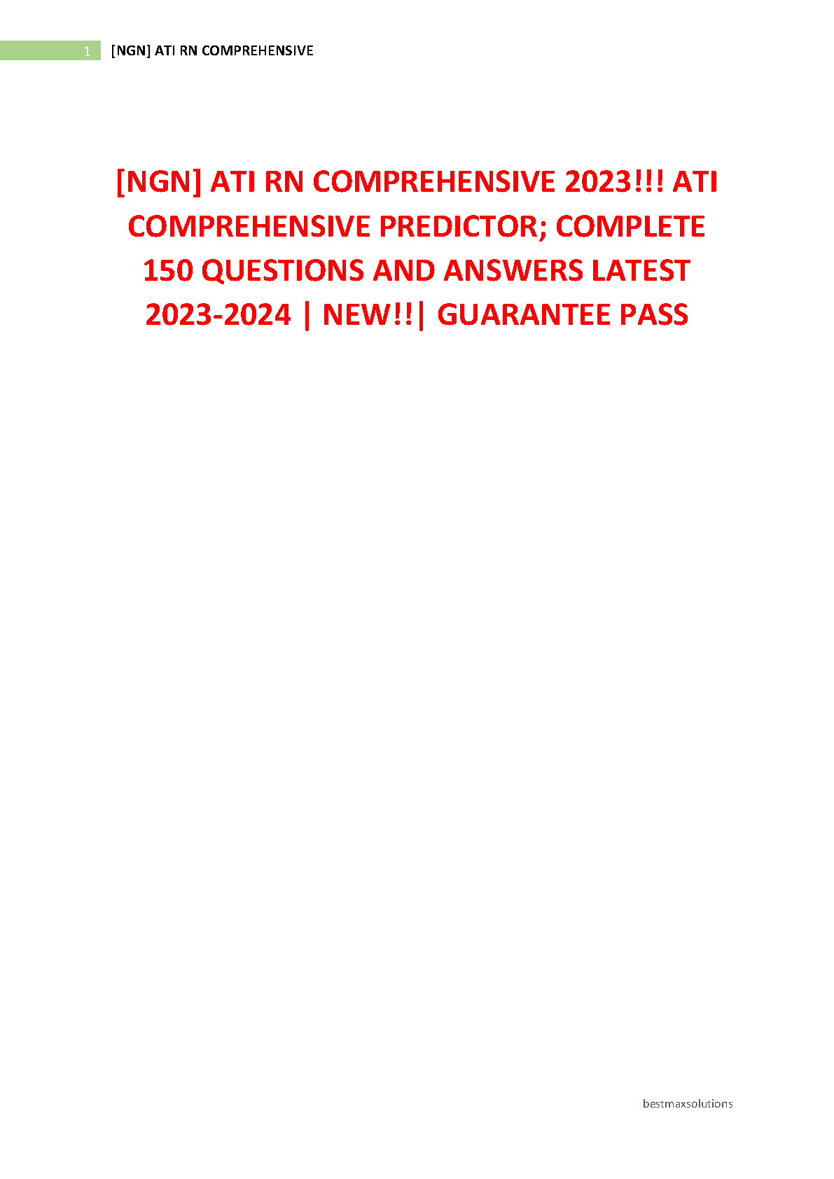 Ace your ATI RN Comprehensive exam with this latest 2023-2024 edition study guide. This predictor features 150 practice questions and detailed answers designed to help you master the content and confidently pass your exam on the first try. Avoid the stress of resits and get the results you deserve with this comprehensive study resource.