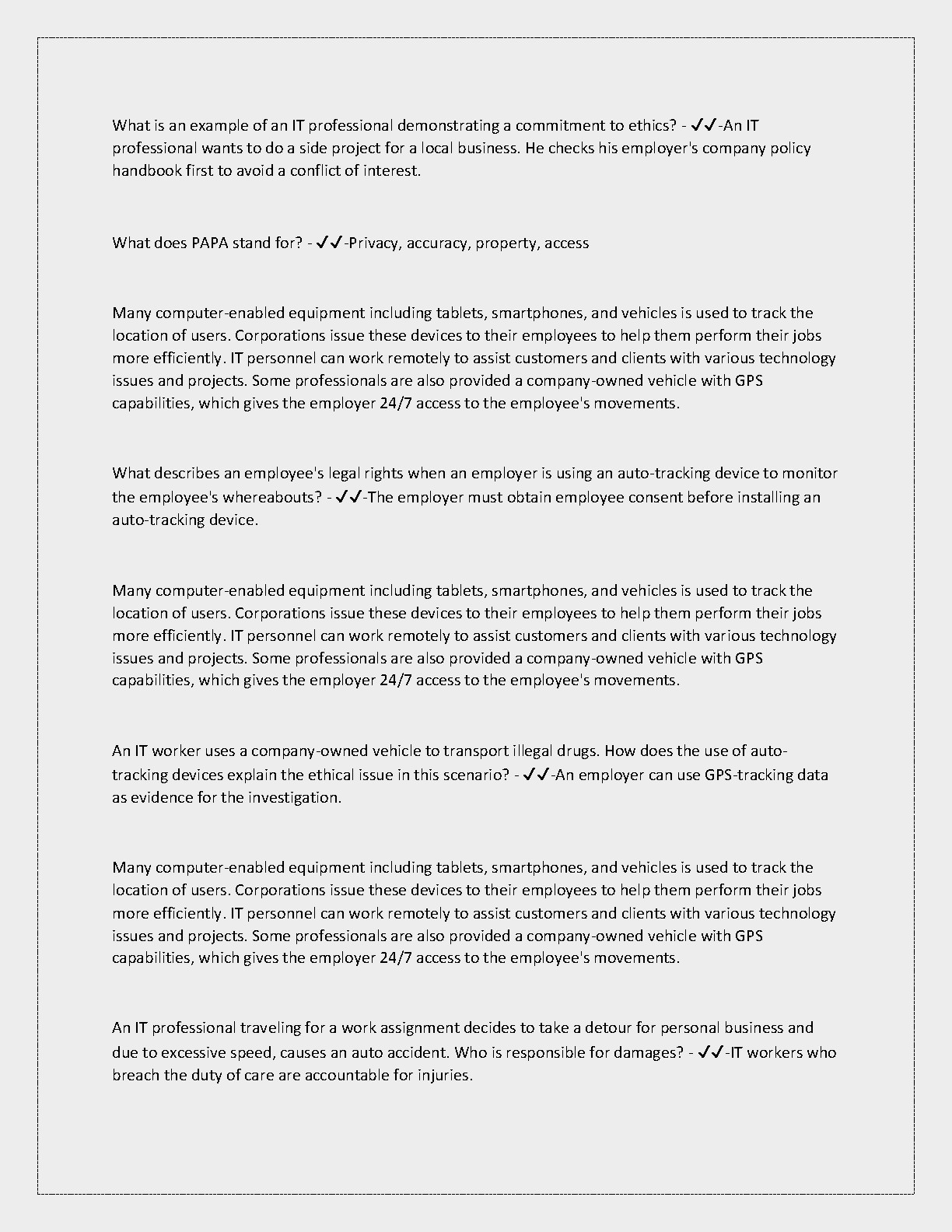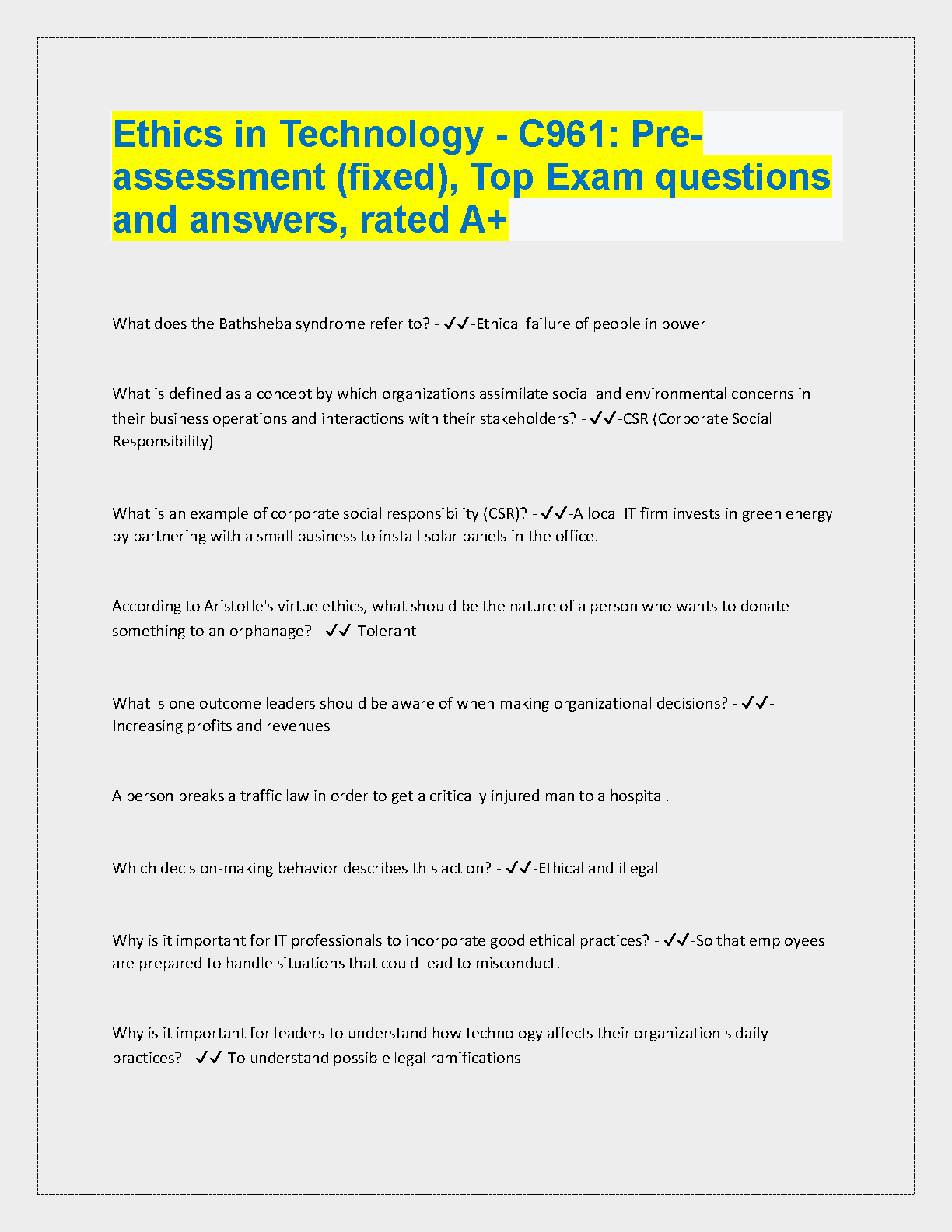 Ethics in Technology - C961: Pre-assessment (fixed), Top Exam questions and answers, rated A+