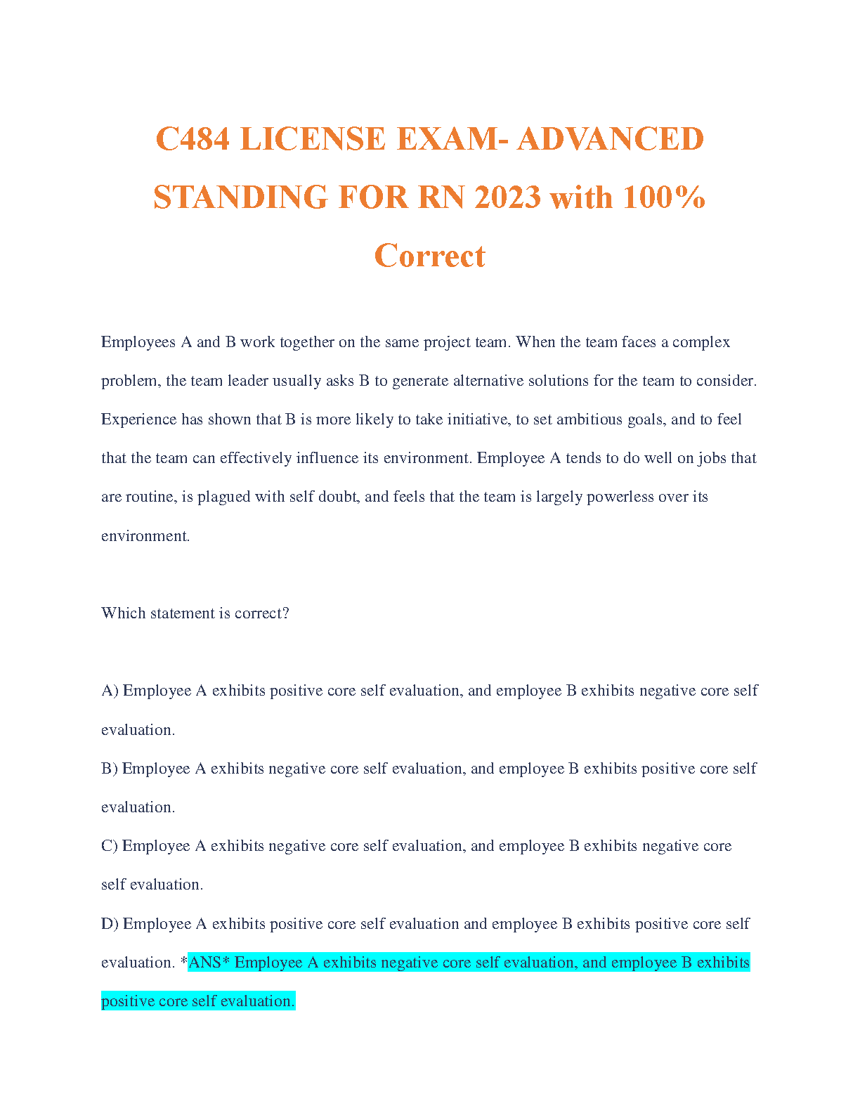 C484 License Exam - Advanced Standing for RN 2023 with 100% Correct