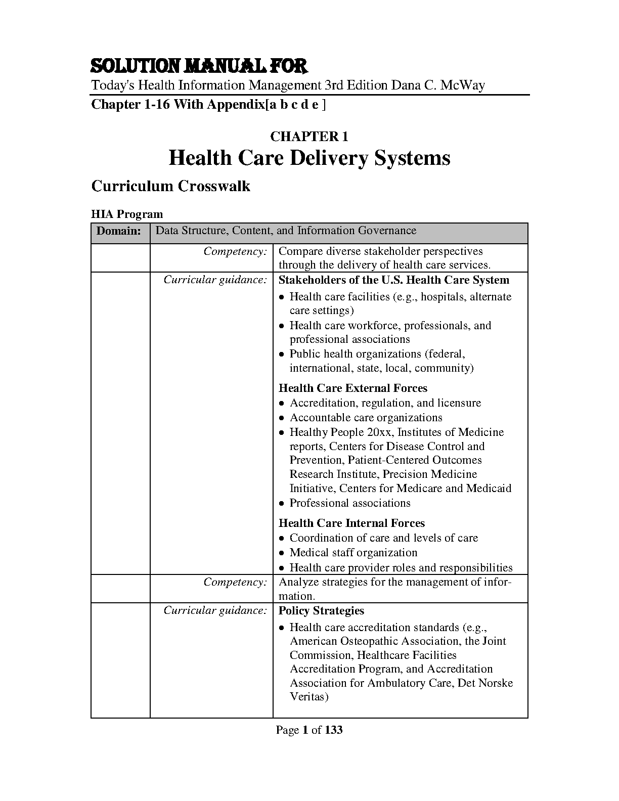 Solution Manual for Today's Health Information Management 3rd Edition by Dana C. McWay
