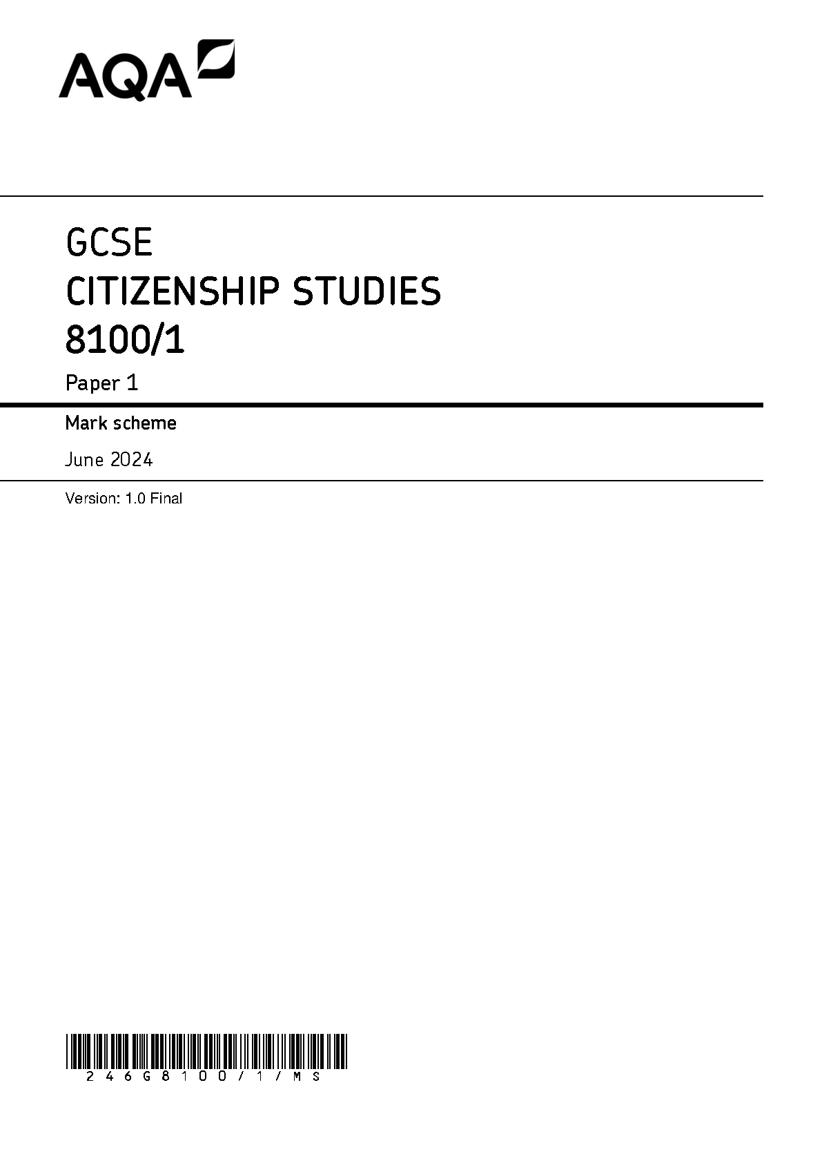 AQA GCSE CITIZENSHIP STUDIES Mark scheme Paper 1 2024 (8100/1)