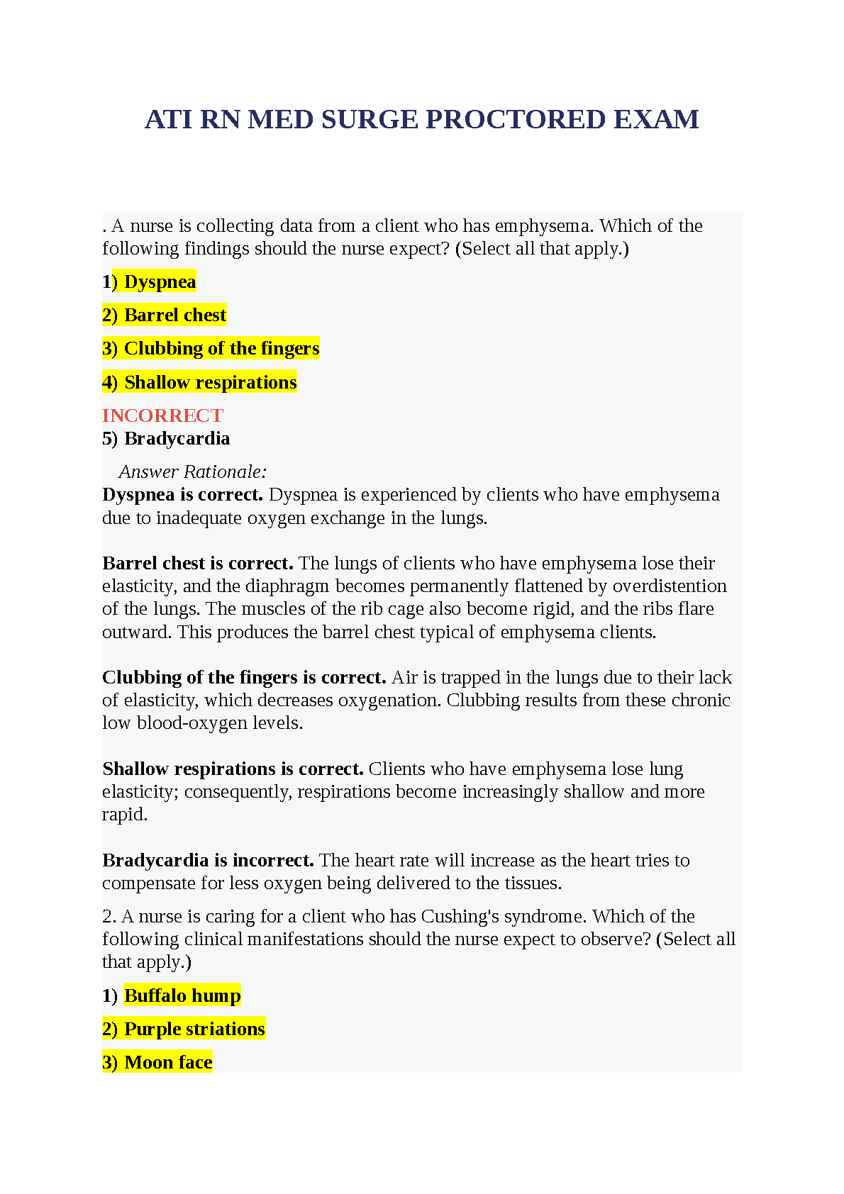Ace your ATI RN Med Surge Proctored Exam with this comprehensive guide designed to help students pass on their first try. This resource covers key concepts and practice questions to ensure exam readiness. Avoid resits and achieve your nursing goals. Perfect for the 2024-2025 academic year.