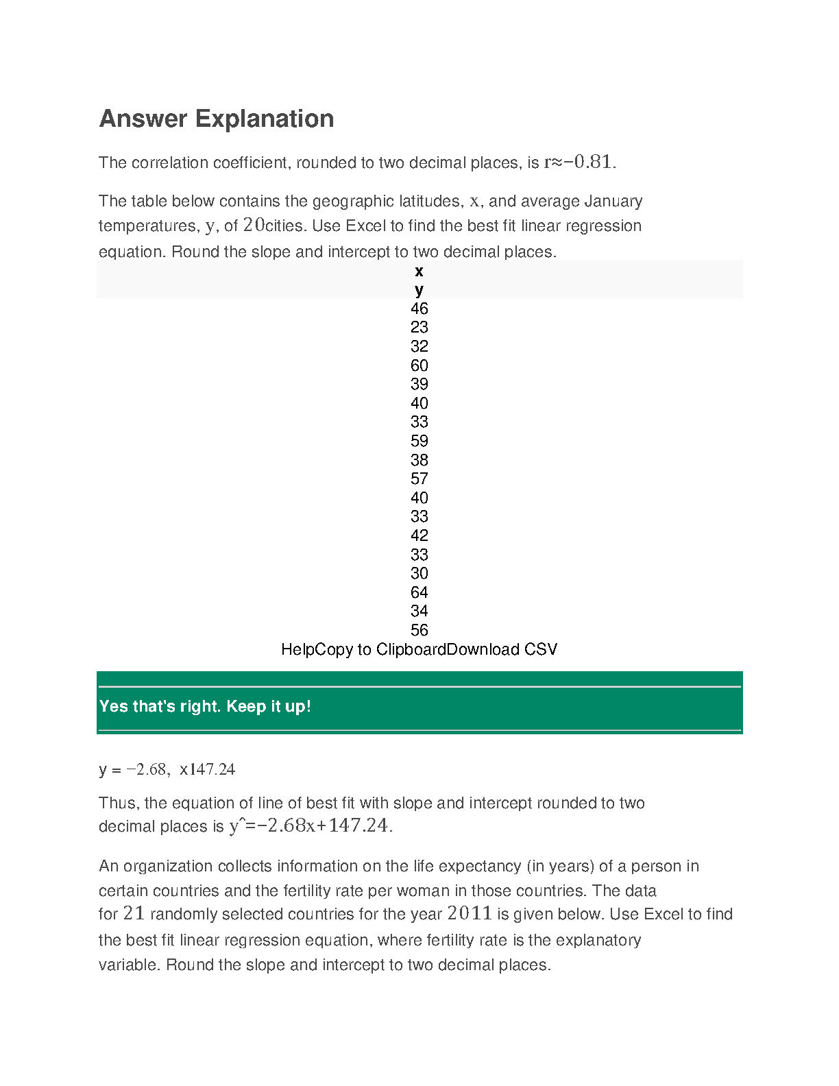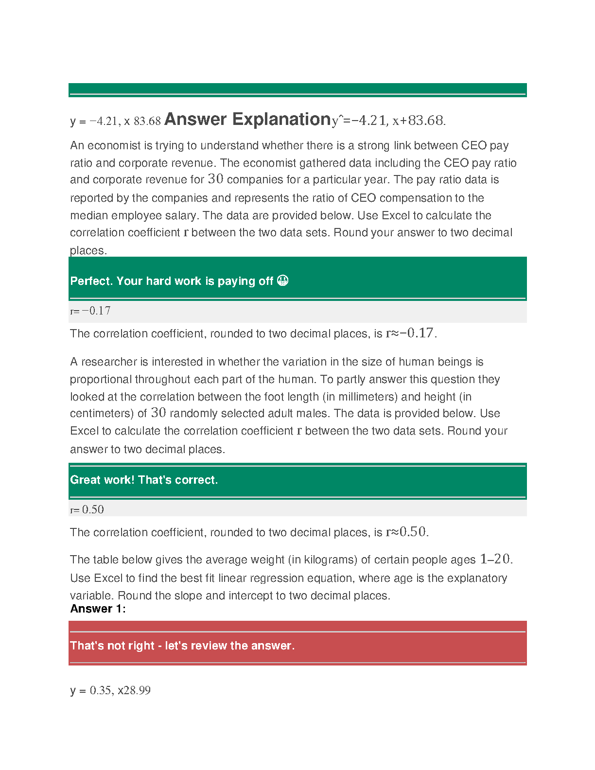 MATH 225N Week 8 Latest Questions with Answers: Performing Linear Regressions with Technology - 2024/2025 Edition