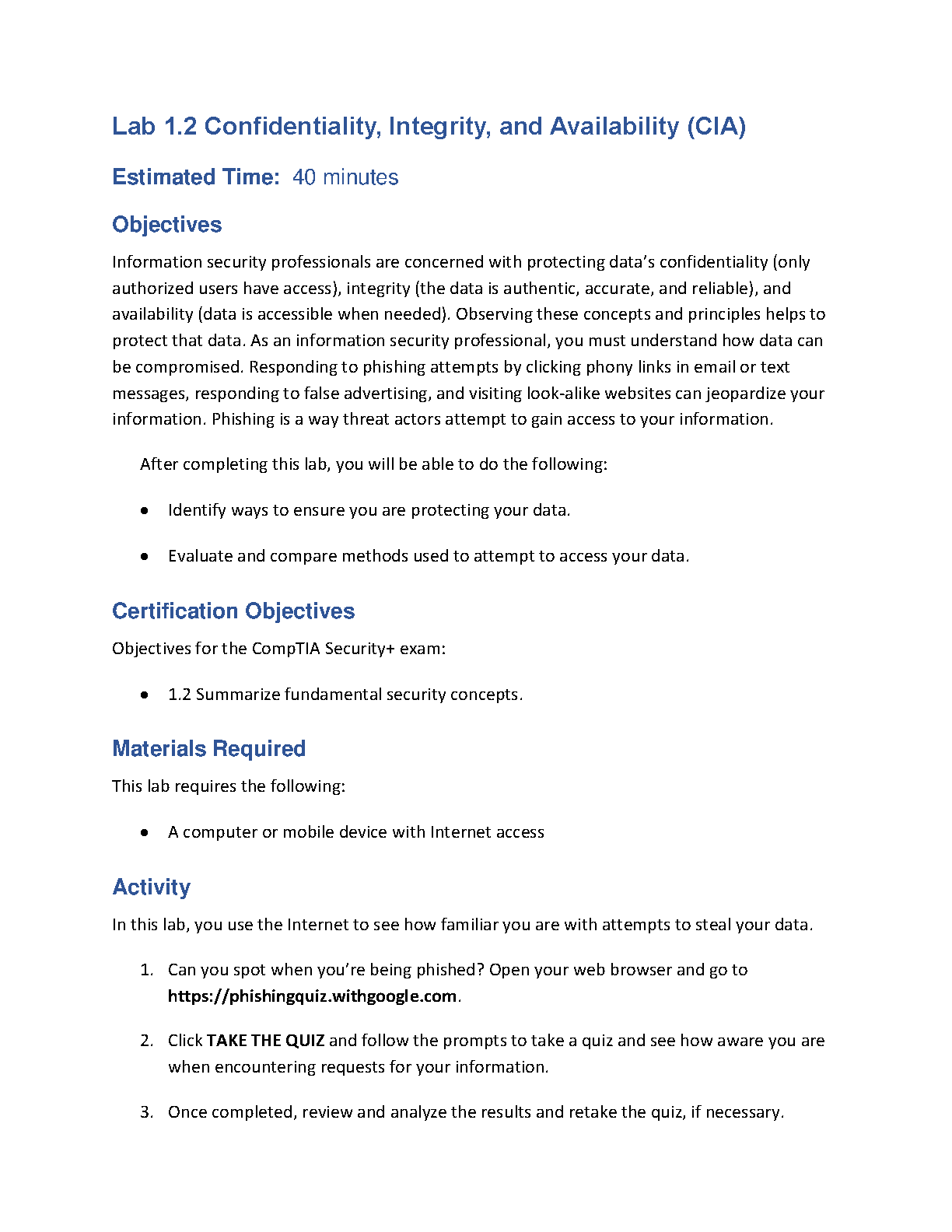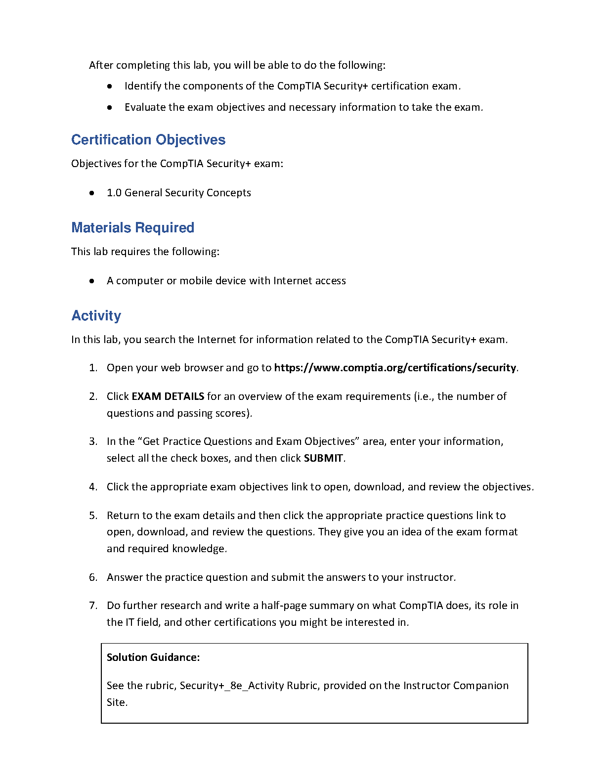 CompTIA Security+ Guide to Network Security Fundamentals 8th Edition 2025 by Mark Ciampa: Module 1 Lab Manual