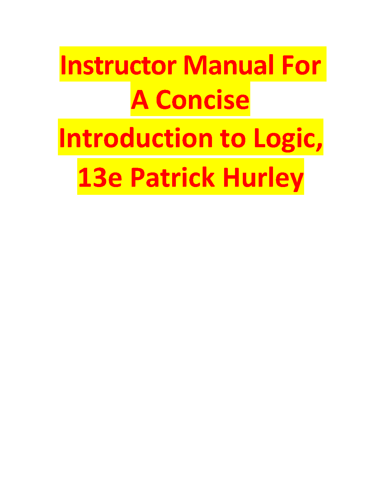 Instructor Manual for A Concise Introduction to Logic, 13e by Patrick Hurley and Laurie Laudan