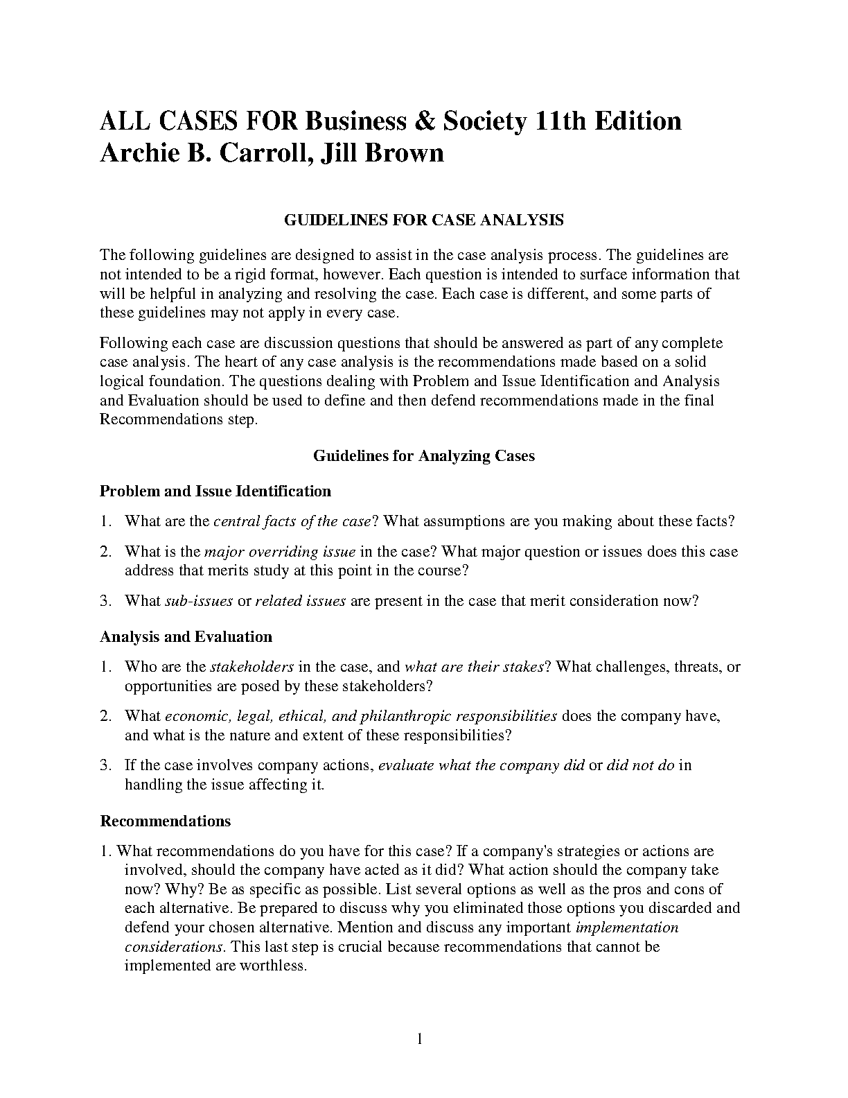 All Cases for Business & Society, 11th Edition: A Case Analysis Guide by Archie B. Carroll and Jill Brown
