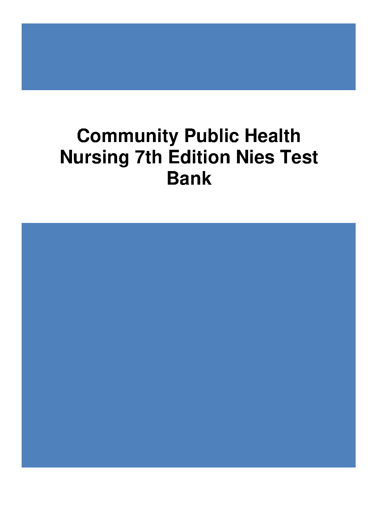 Ace your Community Public Health Nursing exams with this comprehensive 7th edition test bank by Nies and McEwen. This resource is perfect for nursing students aiming to pass their exams on the first try, minimizing the need for resits.