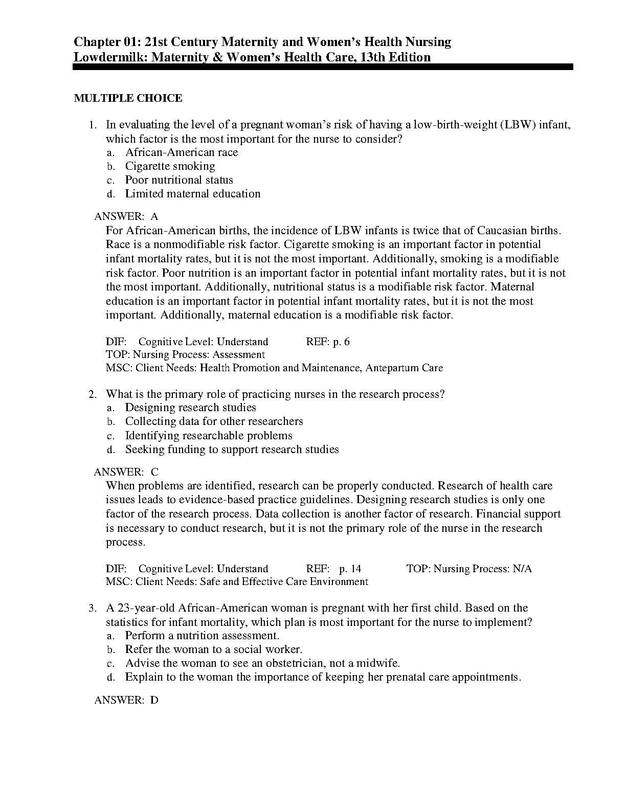 Maternity & Women's Health Care 13th Edition Test Bank - Deitra Leonard Lowdermilk, Kitty Cashion, Kathryn Rhodes Alden, Ellen Olshansky, Shannon E. Perry