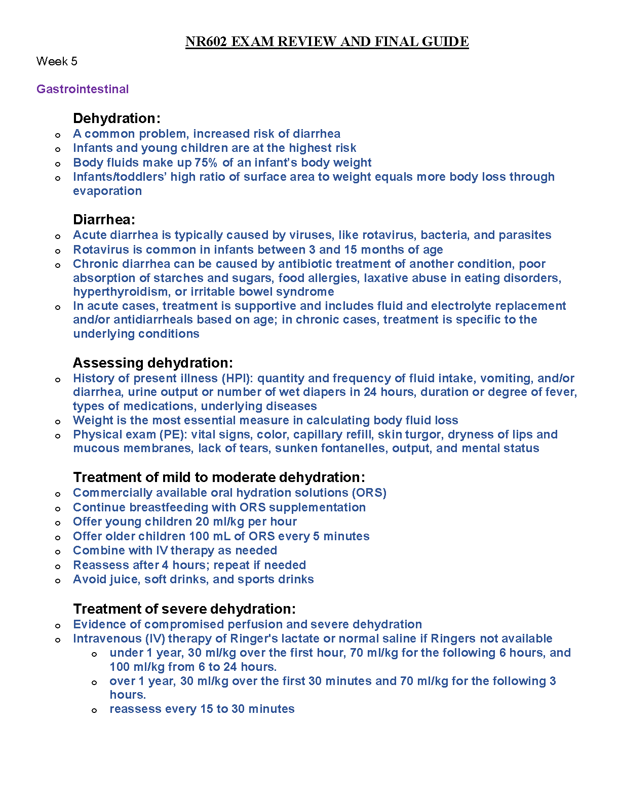 Ace your NR602 exam on the first attempt with this 2024/2025 edition exam guide. This resource covers key gastrointestinal topics, including dehydration and diarrhea, providing effective strategies for exam success and avoiding resits.