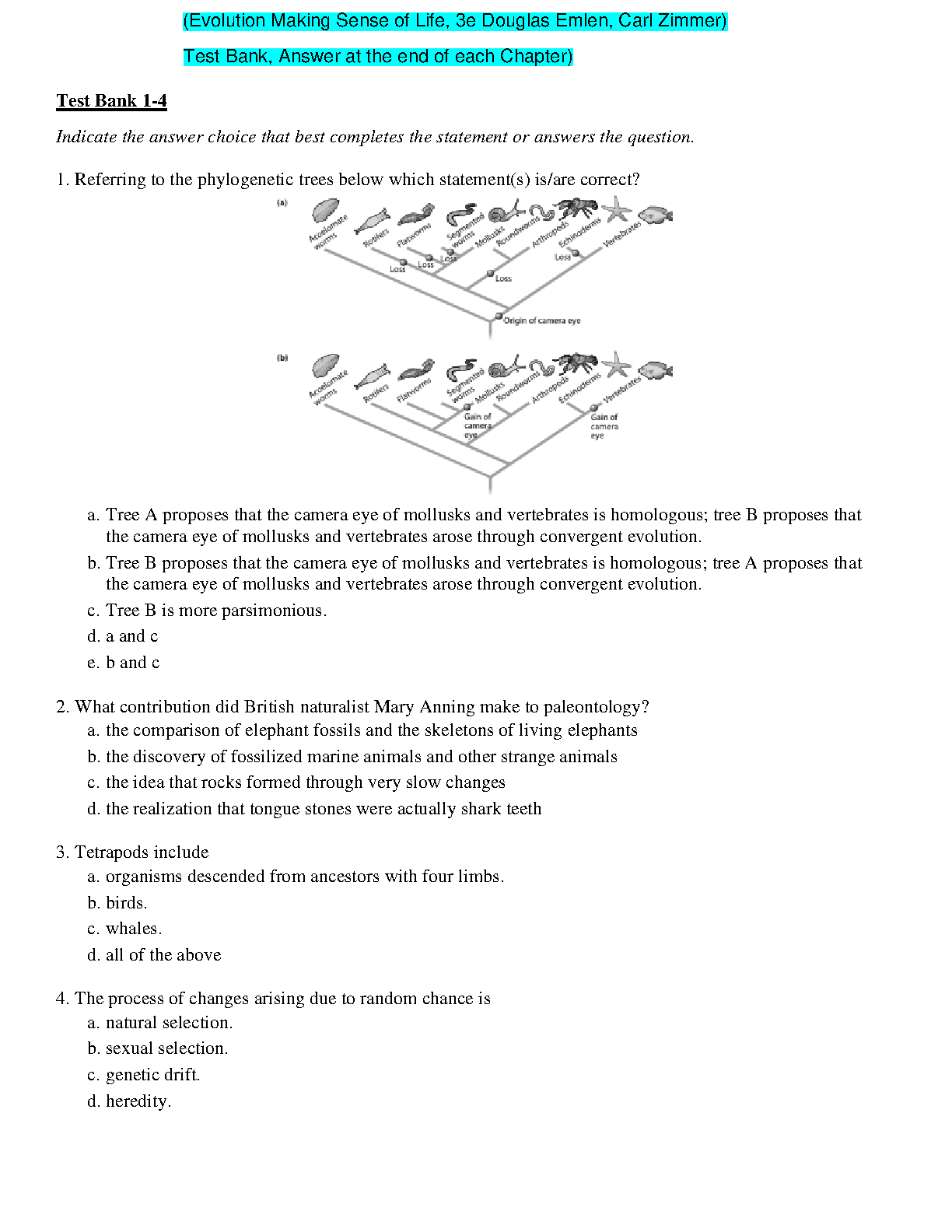 Evolution: Making Sense of Life, Third Edition, Test Bank by Douglas J. Emlen and Carl Zimmer