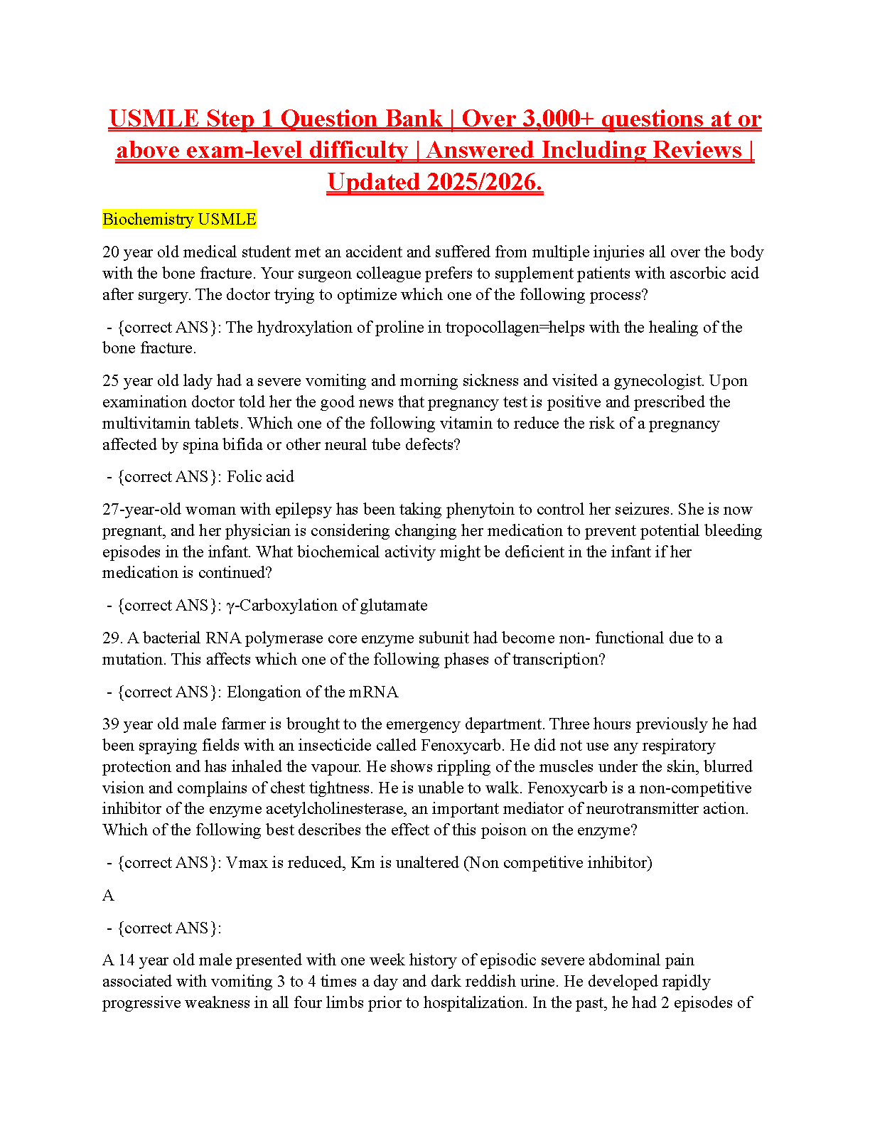 USMLE Step 1 Question Bank 2025/2026 Edition: Biochemistry Questions and Answers by [Author Names to be added from online search]