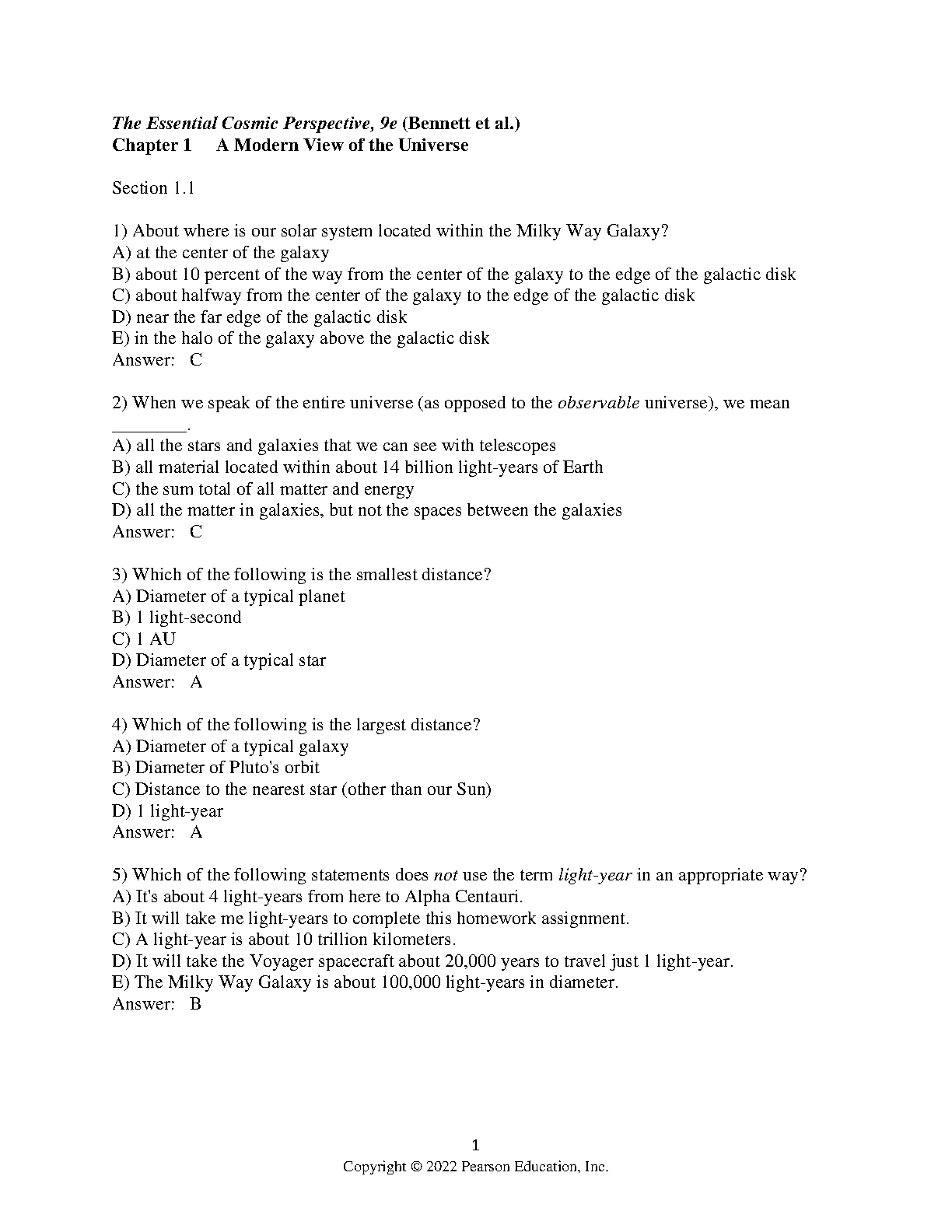 Access solutions for Chapter 1, "A Modern View of the Universe," from the 9th edition of "The Essential Cosmic Perspective" by Bennett et al. Prepare effectively for exams and ace your first attempt, avoiding resits.