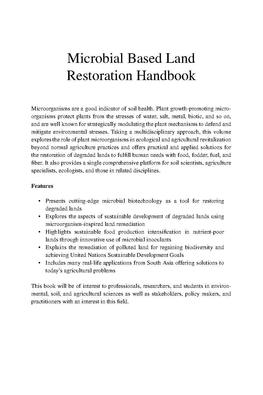 This comprehensive handbook, edited by Vimal Chandra Pandey and Umesh Pankaj, delves into the crucial role of microbes in land restoration and plant health development. Volume 2 provides in-depth insights and practical strategies for sustainable land management. Ideal for students and professionals in environmental science, agriculture, and related fields.