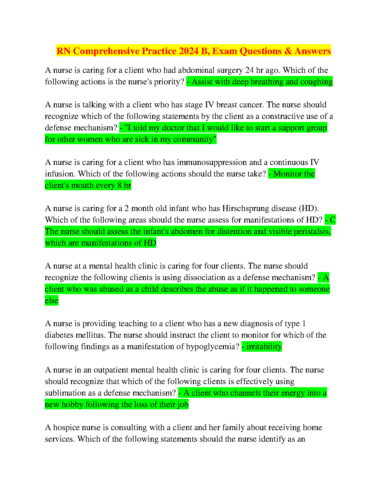RN Comprehensive Practice 2024 B Exam Questions & Answers by [Author Names - If available online, otherwise leave blank]