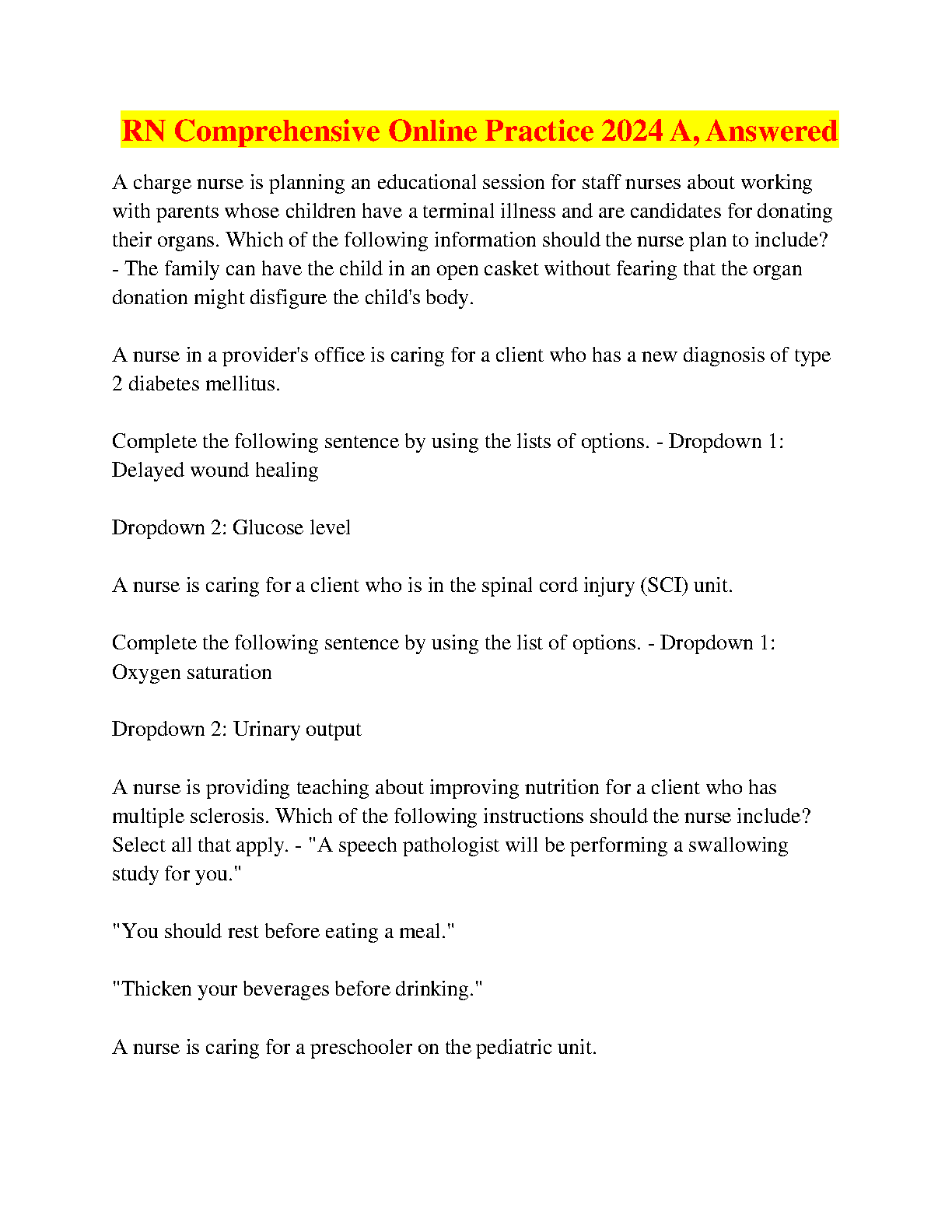 RN Comprehensive Online Practice 2024 A, Answered by [Author Names not found]