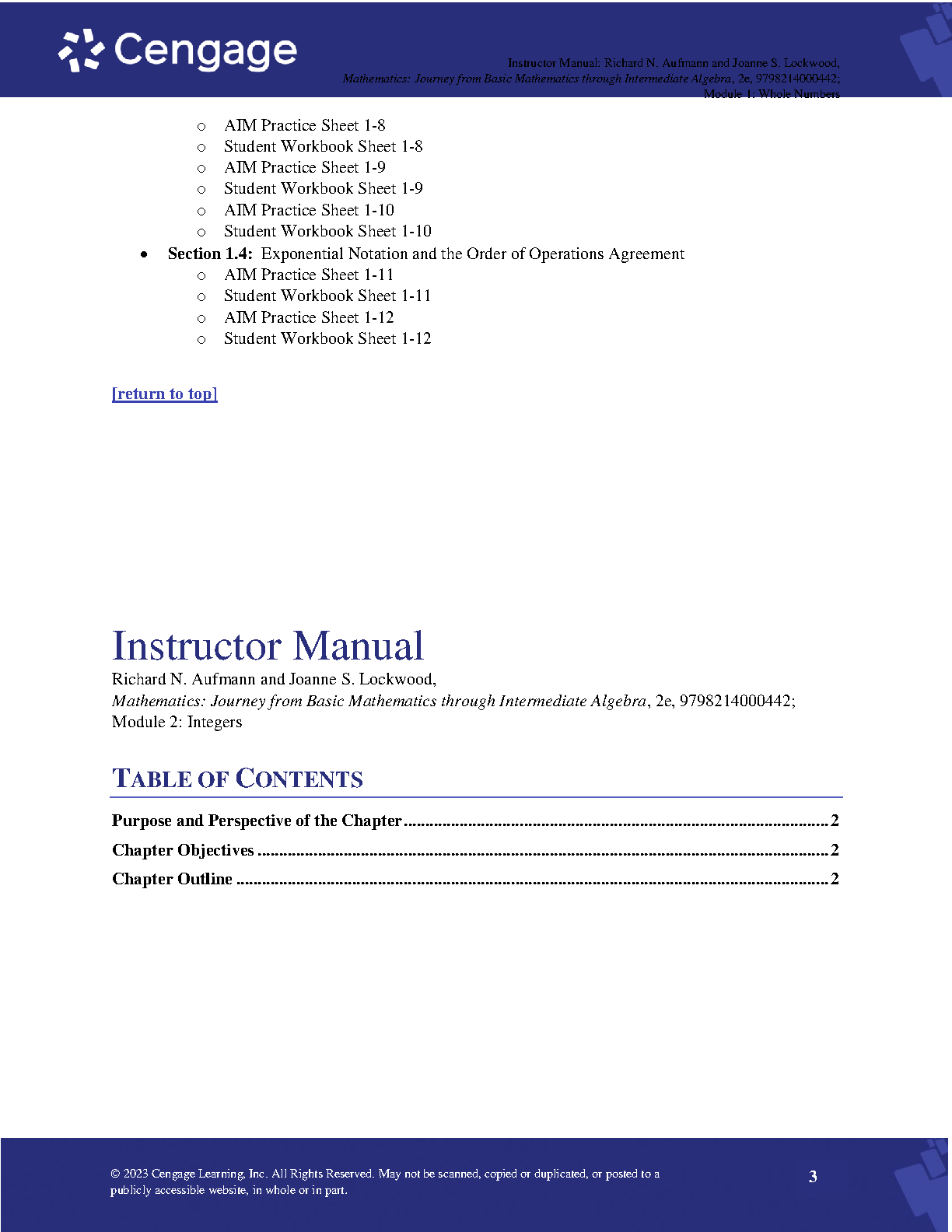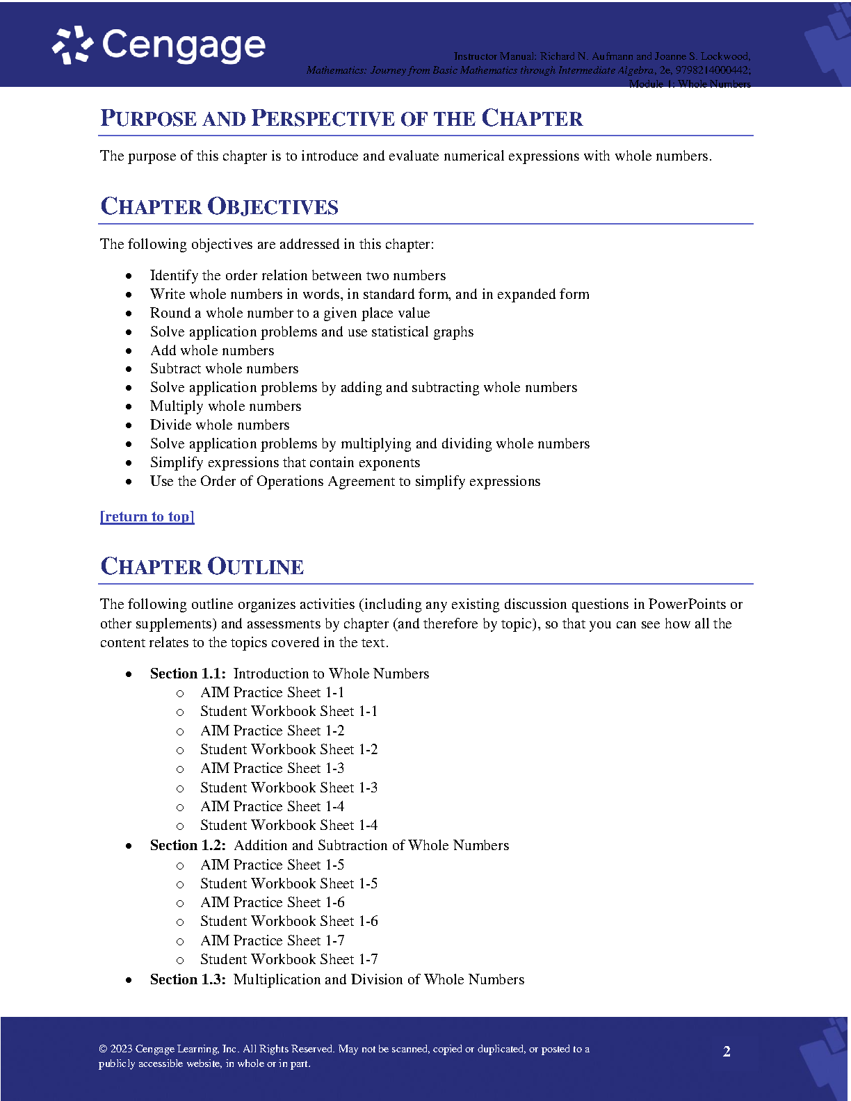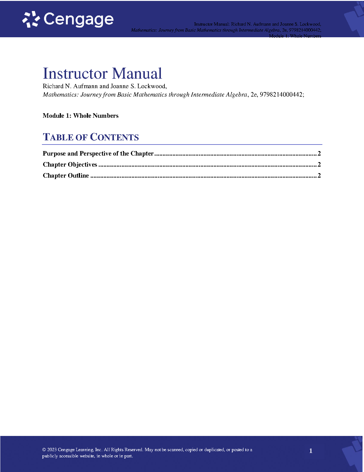 Access this comprehensive instructor manual for Aufmann and Lockwood's "Mathematics: Journey from Basic Mathematics through Intermediate Algebra, 2e". This resource provides valuable tools and support materials for educators teaching this popular mathematics textbook.