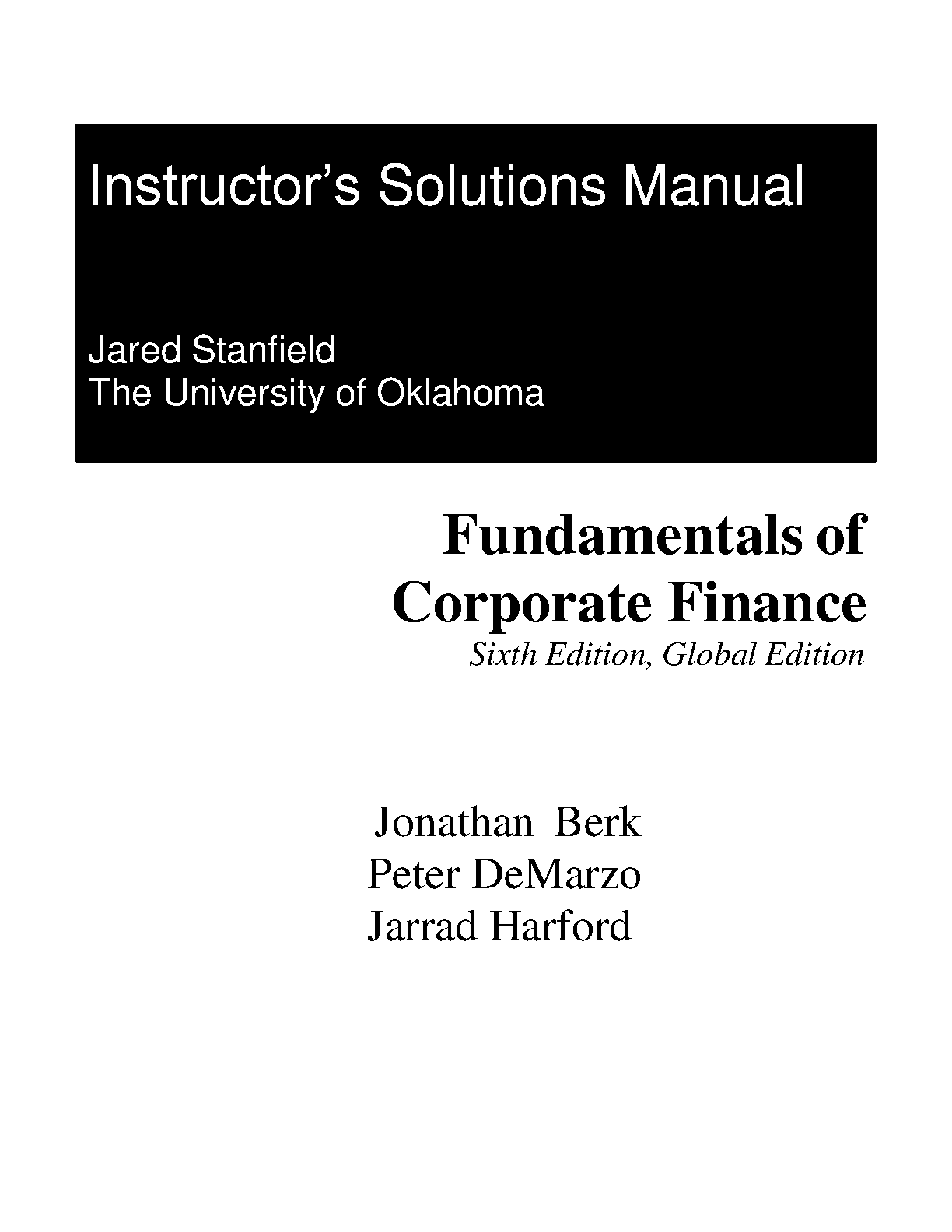 Fundamentals of Corporate Finance, Sixth Edition, Global Edition Instructor's Solution Manual by Jonathan Berk, Peter DeMarzo, and Jarrad Harford
