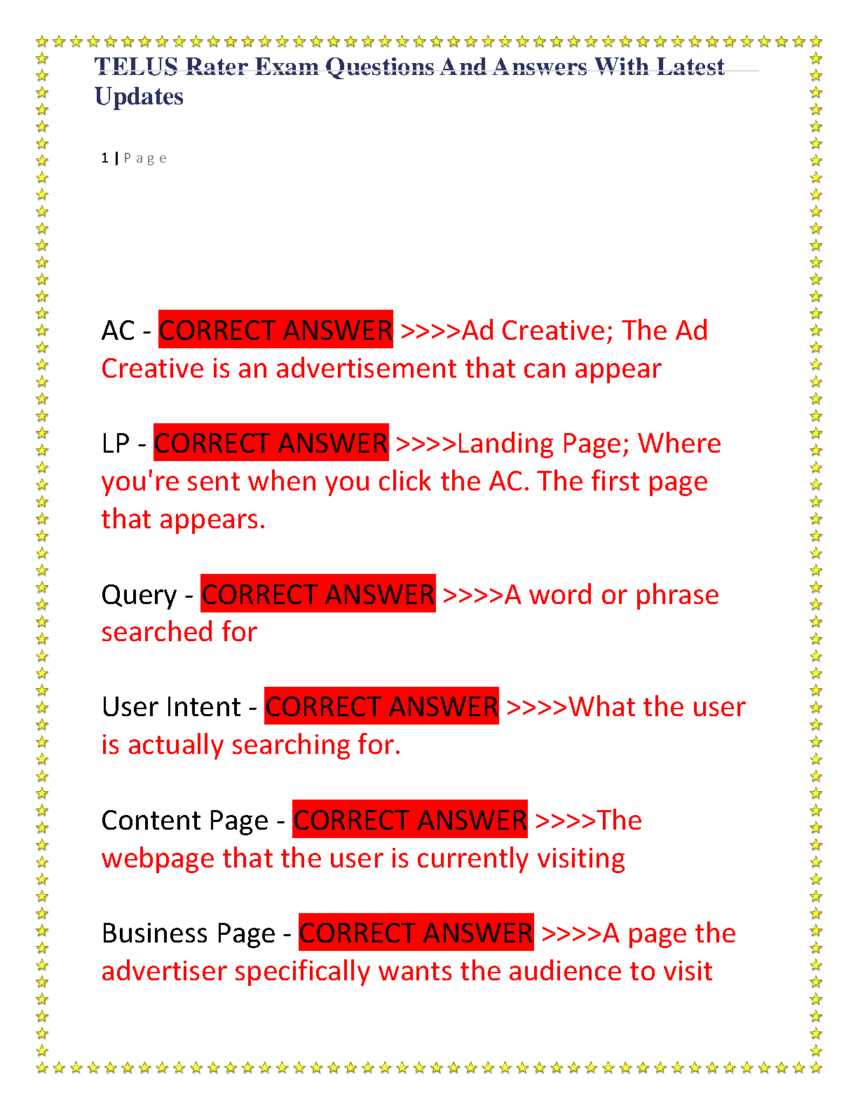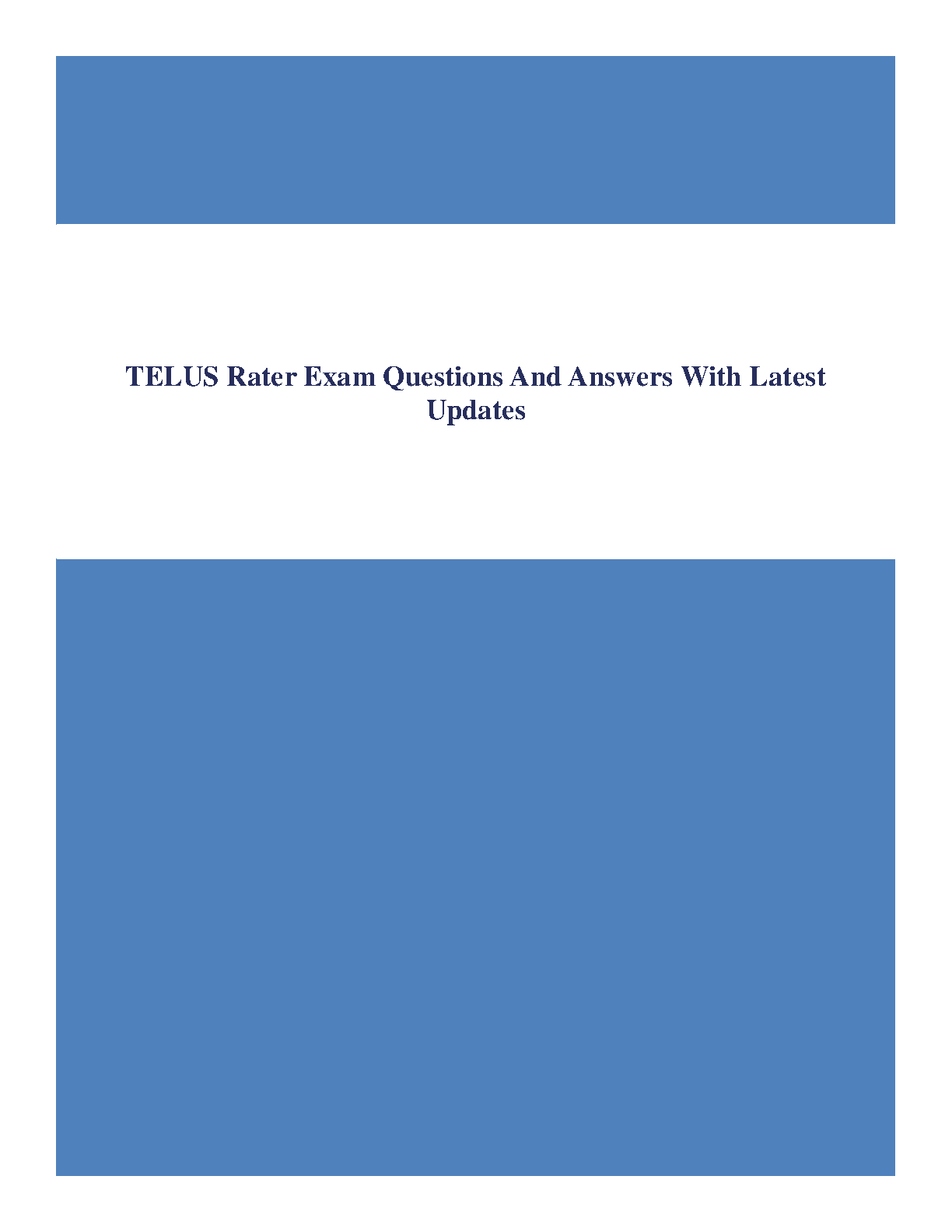 Telus Rater Exam Questions and Answers with Latest Updates for 2024/2025: Ace Your Exam on the First Attempt
