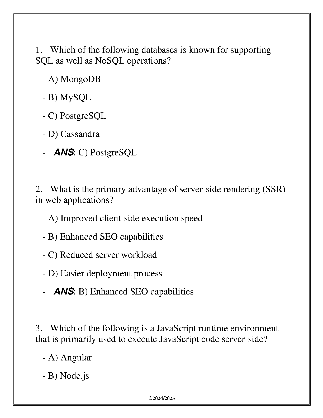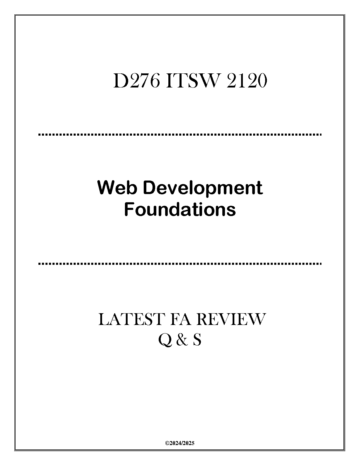 This comprehensive guide provides the latest FA review questions and answers for D276 ITSW 2120 Web Development Foundations, designed to help students pass their exams on the first attempt and avoid resits. It's perfect for the 2024-2025 academic year.