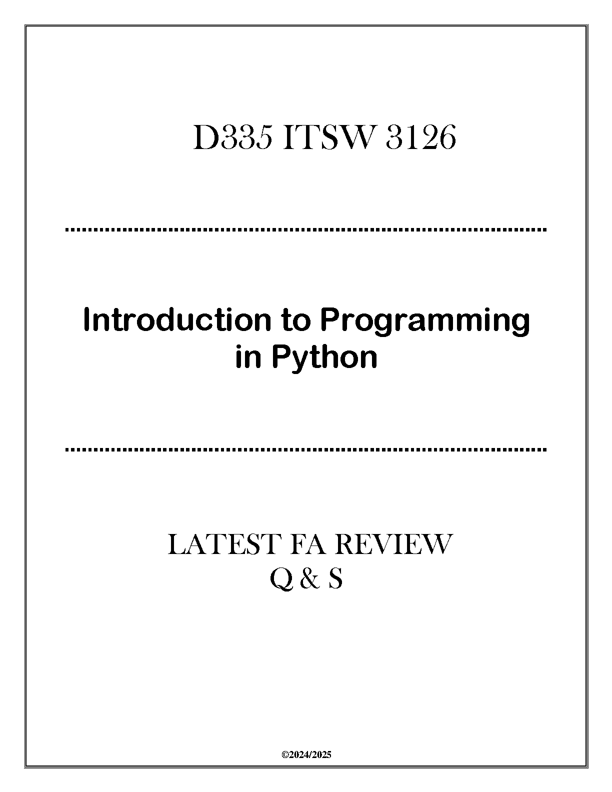 Introduction to Programming in Python: D335 ITSW 3126 - 2024/2025 Edition - Ace Your Exams!