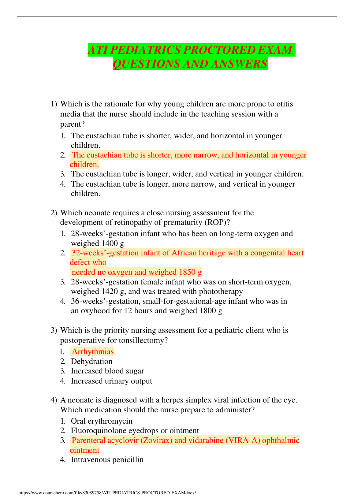 ATI PEDIATRICS PROCTORED EXAM QUESTIONS AND ANSWERS 100% CORRECT SOLUTION. DOWNLOAD on www.hackedexams.com INSTANTLY.