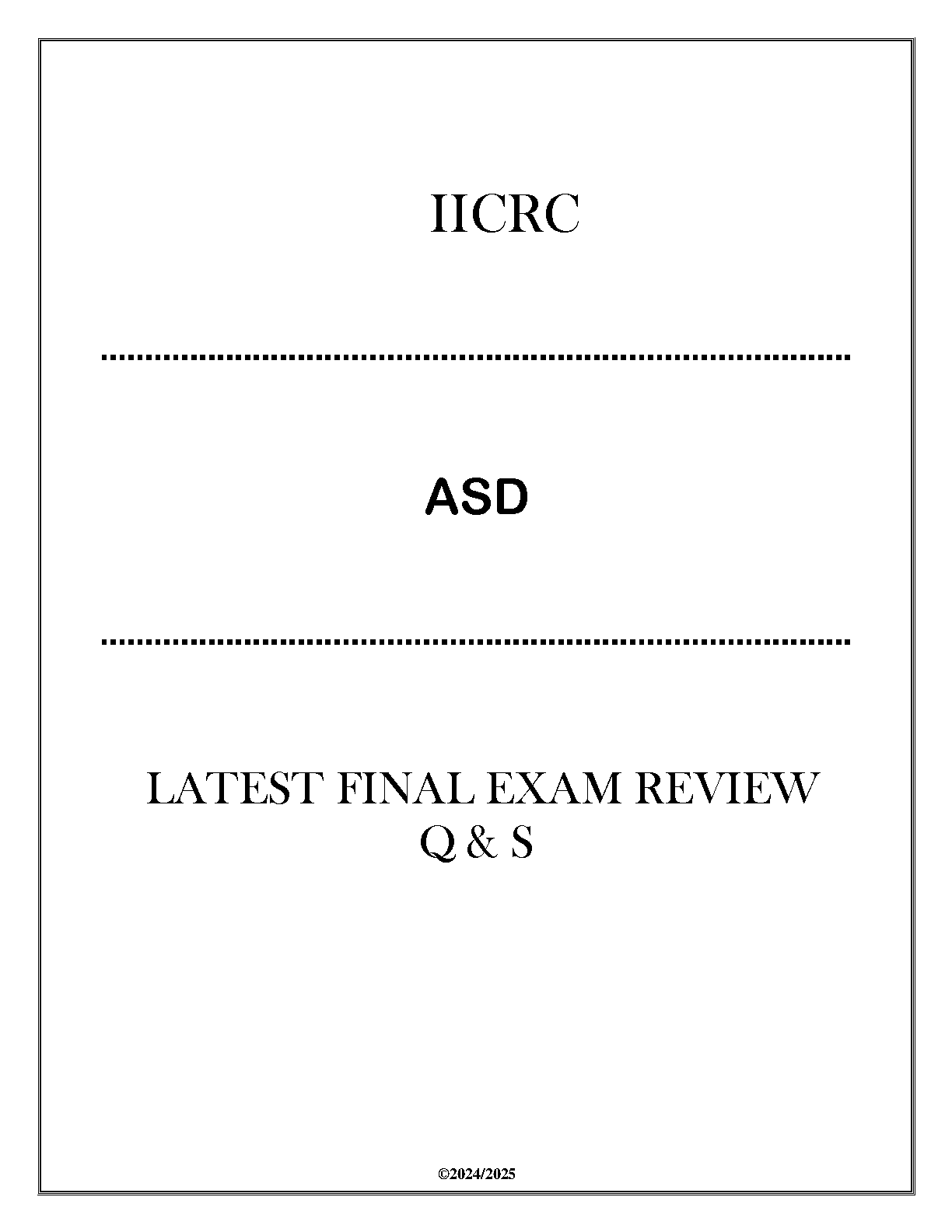 Ace your IICRC ASD exam on the first attempt with this comprehensive 2024-2025 exam review. This resource includes questions and answers to help students master the subject and avoid exam resits.