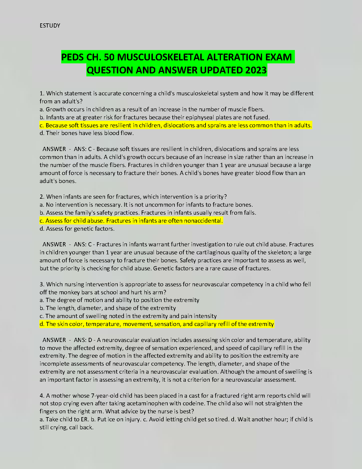 PEDS CH. 50 MUSCULOSKELETAL ALTERATION EXAM QUESTION AND ANSWER UPDATED 2023 . DOWNLOAD on www.hackedexams.com INSTANTLY.