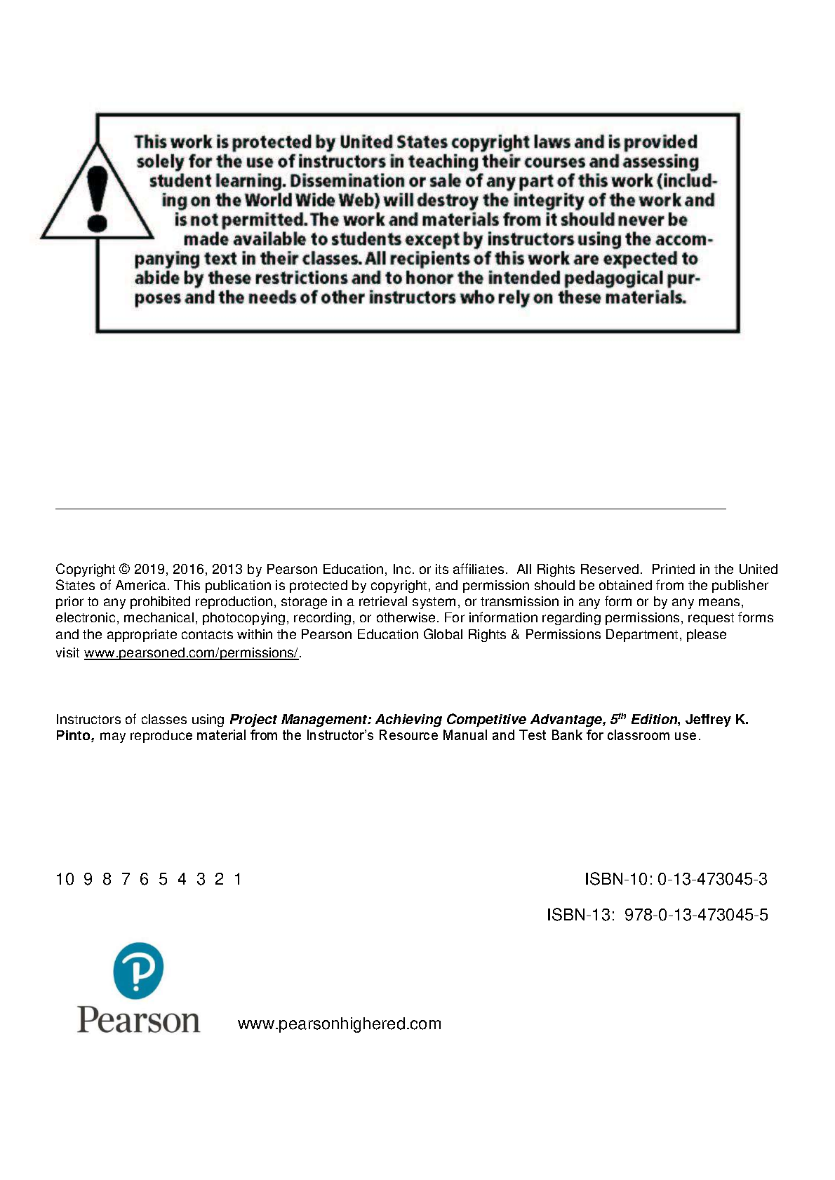 Project Management: Achieving Competitive Advantage, 5th Edition, Global Edition - Solutions Manual by Jeffrey K. Pinto