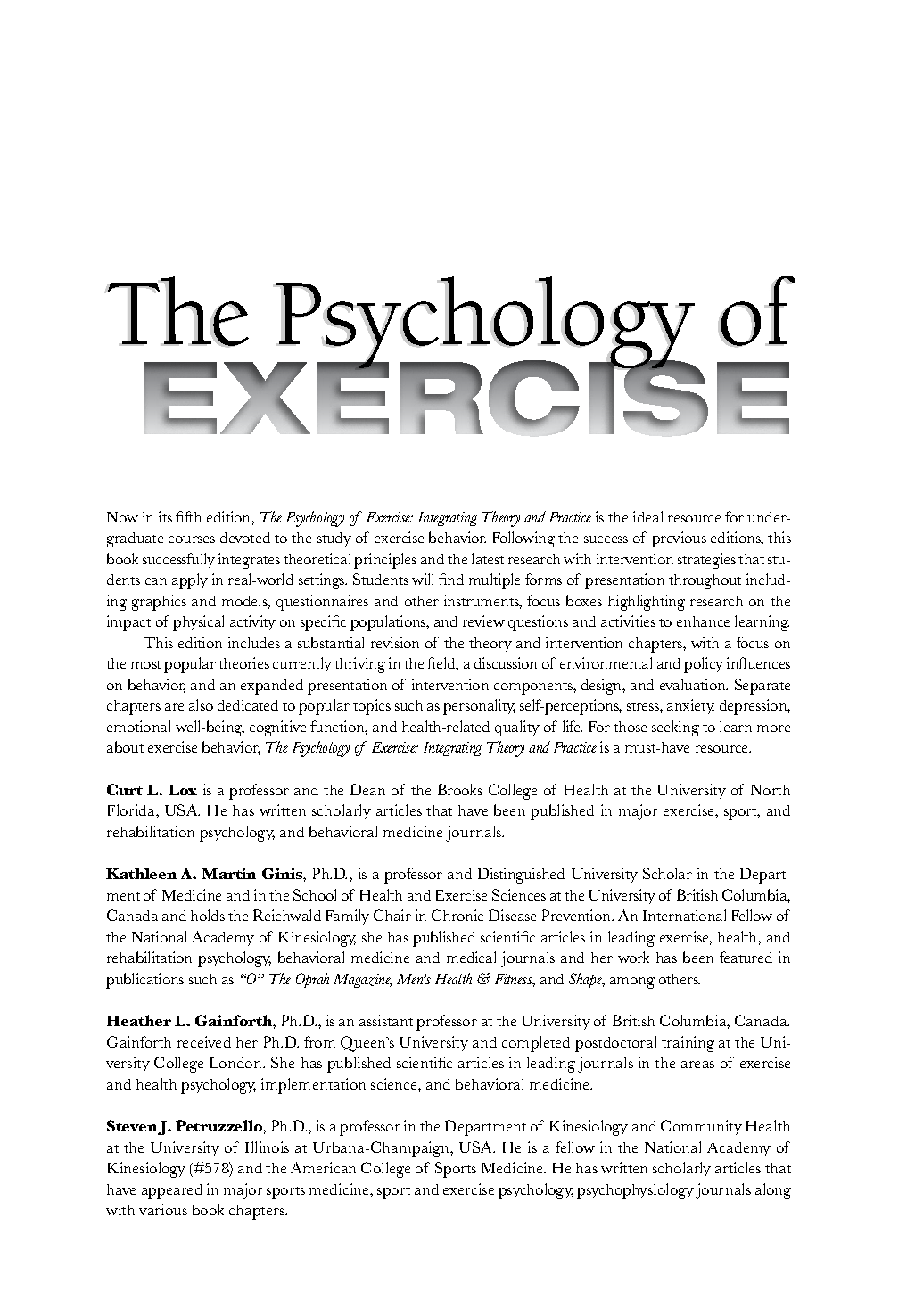 The Psychology of Exercise, Fifth Edition: Curt L. Lox, Kathleen A. Martin Ginis, Heather L. Gainforth, and Steven J. Petruzzello