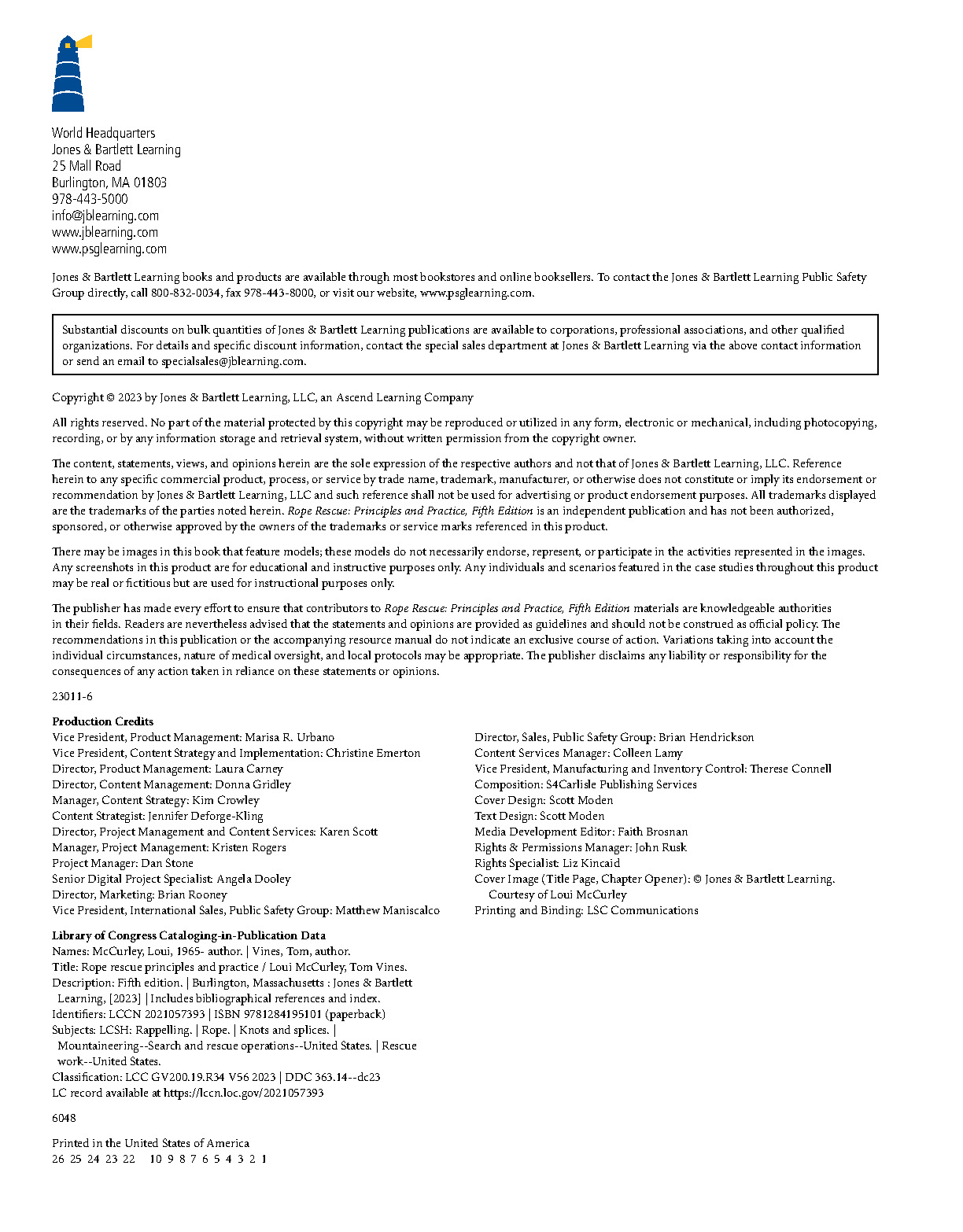 Rope Rescue: Principles and Practice, Fifth Edition by Loui McCurley and Tom Vines