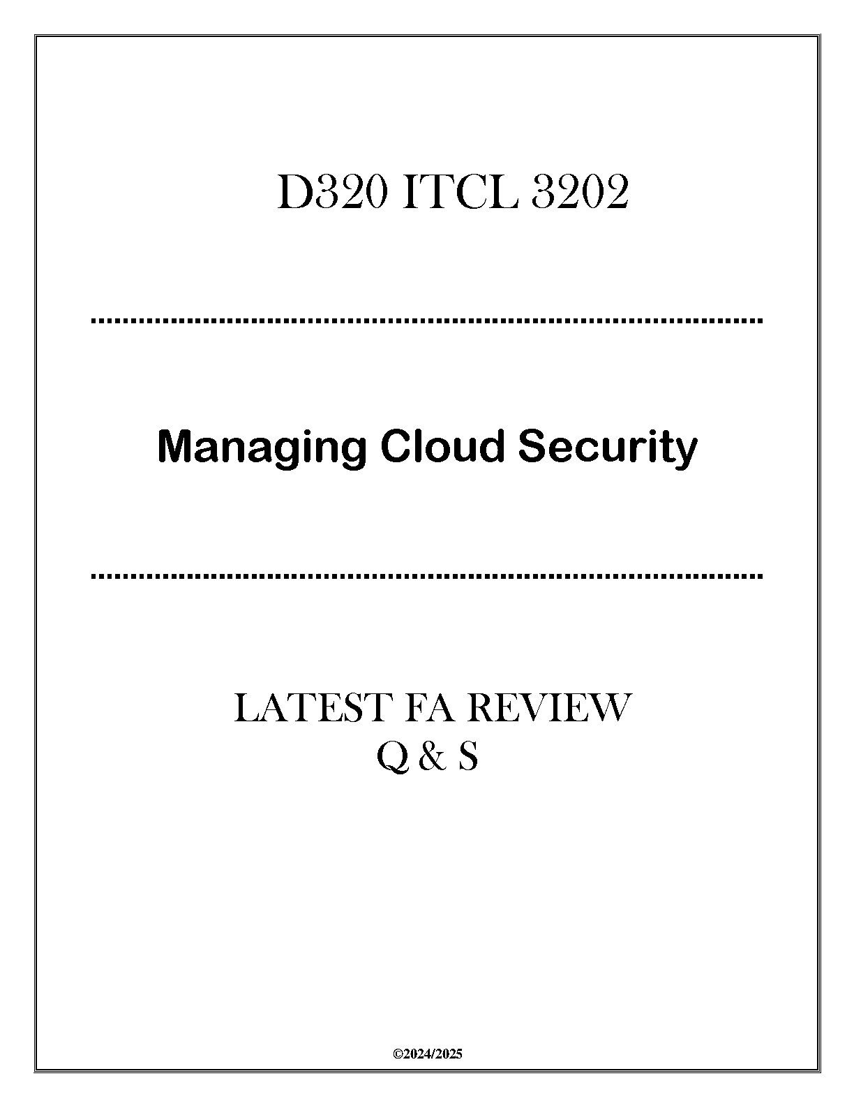 D320 ITCL 3202 Managing Cloud Security: Latest 2024/2025 Exam Review Q&A for First-Time Passers