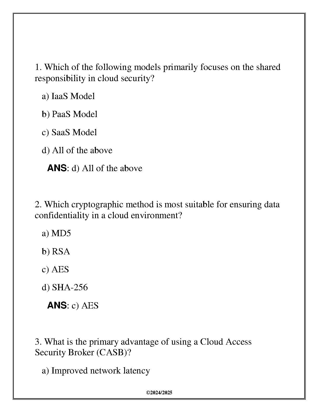Ace your D320 ITCL 3202 Managing Cloud Security exam with this comprehensive 2024/2025 review guide. This resource contains questions and answers designed to help students pass on their first attempt, minimizing the need for resits. Prepare effectively and confidently for exam success.