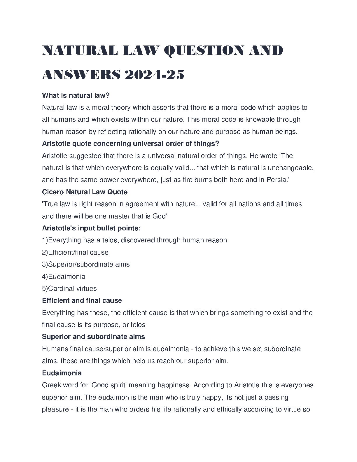 Natural Law Question and Answers 2024-25: A Comprehensive Guide by Aristotle and Cicero